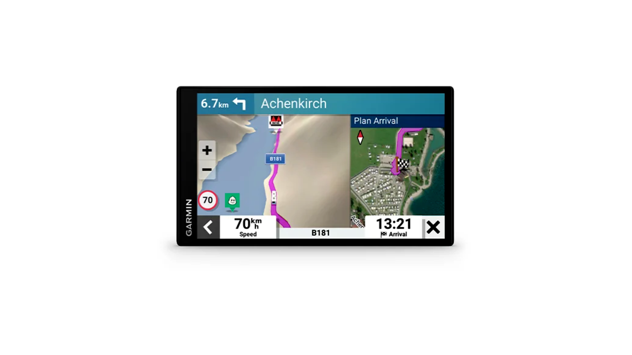 - A 7 hüvelykes érintőképernyő világos, nagy felbontású és keret nélküli. Ez megkönnyíti a fontos útvonalinformációk olvasását.