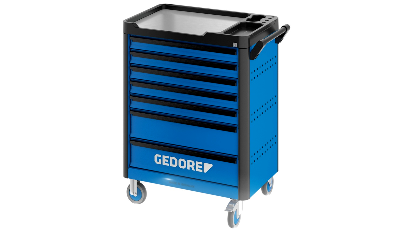 Az GEDORE Workster highline WHL-L7-TS-147 műhelykocsi biztosít mindent, amire egy professzionális munkahelyen szükség lehet. Hét fiókjával és hozzá tartozó, PP-műanyagból készített munkafelületével, amelyet frontális lelapítás és görgővédő él egészít ki, ez a műhelykocsi nemcsak praktikus, de rendkívül tartós is.