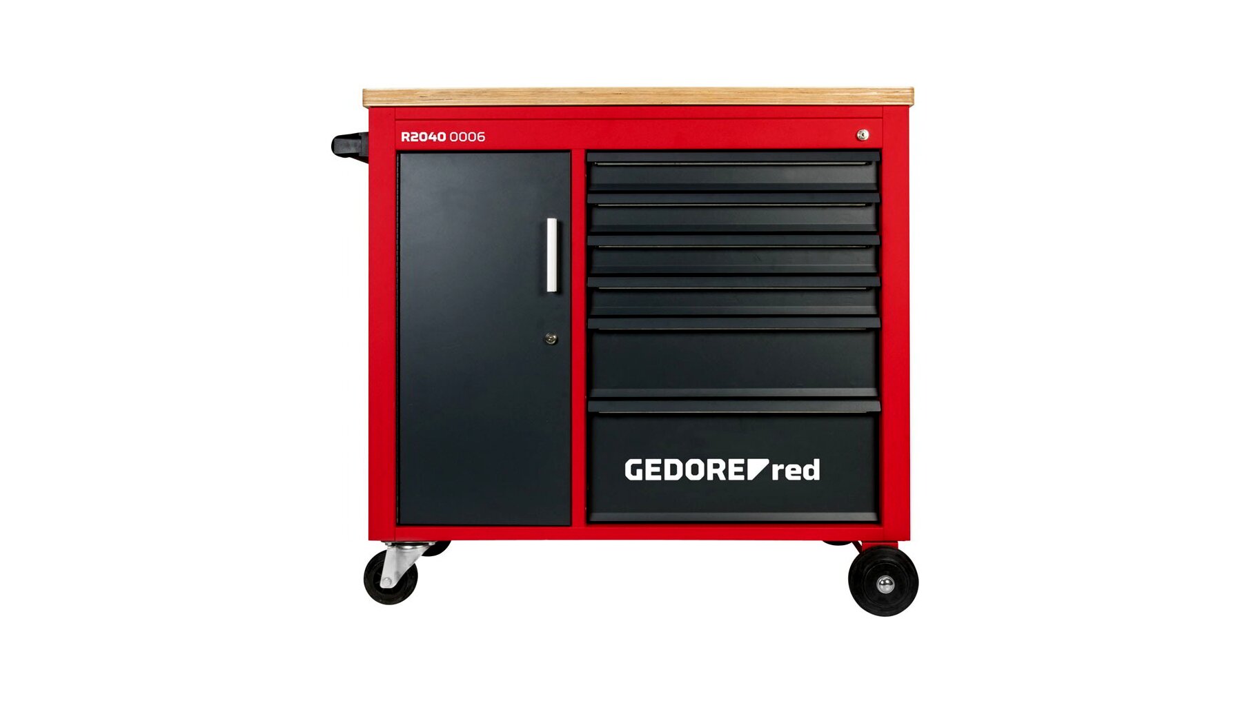 A Gedore MECHANIC PLUS R20400006 szerszámos kocsi piros kivitelben hat teleszkópos, teljesen kihúzható fiókkal, külön zárható ajtóval ellátott nagyméretű tárolóhelyiséggel, a tartozékok számára kialakított euro négyzet alakú lyukakkal ellátott oldallapokkal és fából készült munkalappal rendelkezik. A hajtókormányos fogantyúnak köszönhetően manőverezhető és könnyen irányítható. A hengerzárral ellátott központi zárrendszer lehetővé teszi az összes fiók egyidejű zárását. A négy sekély és két magas fiók teljesen kihúzható. A praktikus, rejtett kioldó rúddal történő egyedi reteszelés megakadályozza, hogy a fiókok kinyíljanak a kocsi mozgása közben. A MECHANIC PLUS szerszámkocsi 210 kg összterhelhetőséget kínál.
