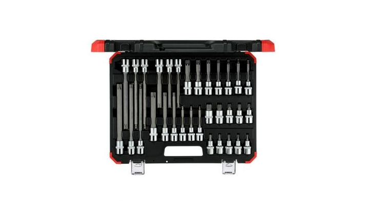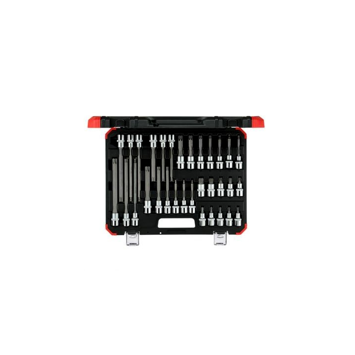 A Gedore R68003032 Dugókulcskészlet ideális választás profi és hobbi szerelők számára. A készlet tartalmaz 32 darabot különböző méretű belső TORX profilú dugókulcsokat, melyek az alábbi méretspecifikációkkal rendelkeznek: TORX T 20, T 25, T 27, T 30, T 40, T 45, T 50, T 55, T 60 és T 70. Ezen dugókulcsok négy különböző hosszúságban érhetőek el (55mm - 200mm), így a nehezebben elérhető csavarokhoz is kényelmesen hozzáférhet.