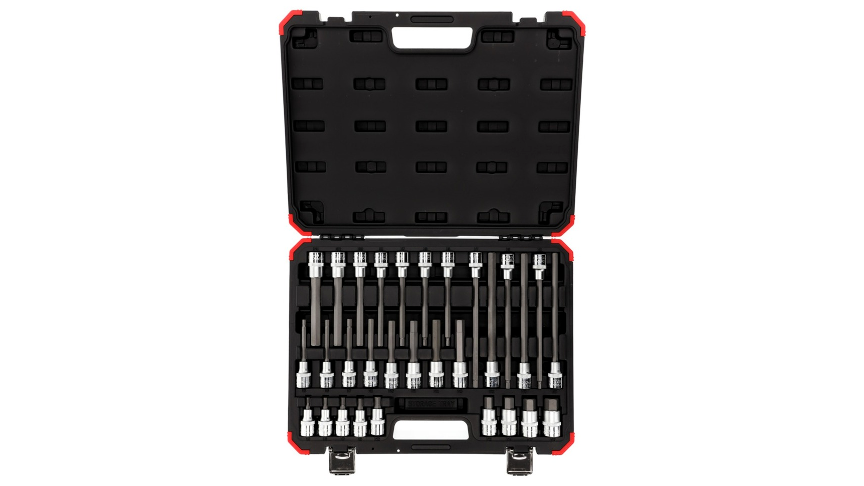 Csavarhúzó-aljaz 1/2 ", hex: metrikus, benyomott, foszfált tűvel, csúszásmentes, hosszanti, gördített fejjel, a meghajtás oldalán fényesen polírozott, a DIN 7422 szerinti kivitel
