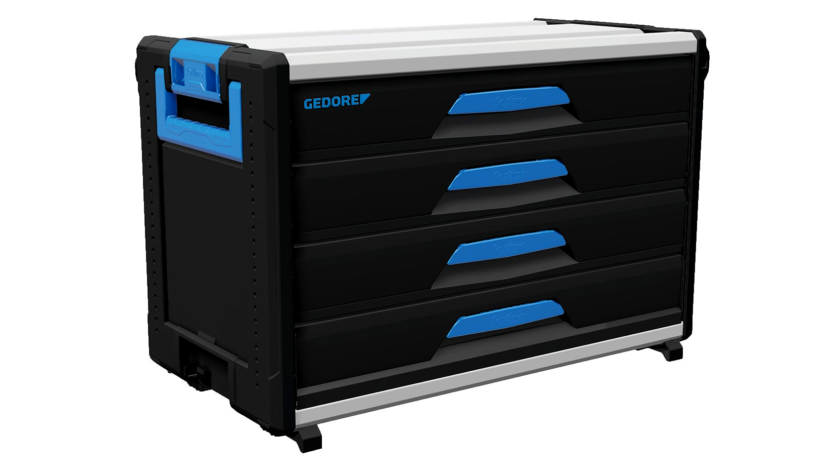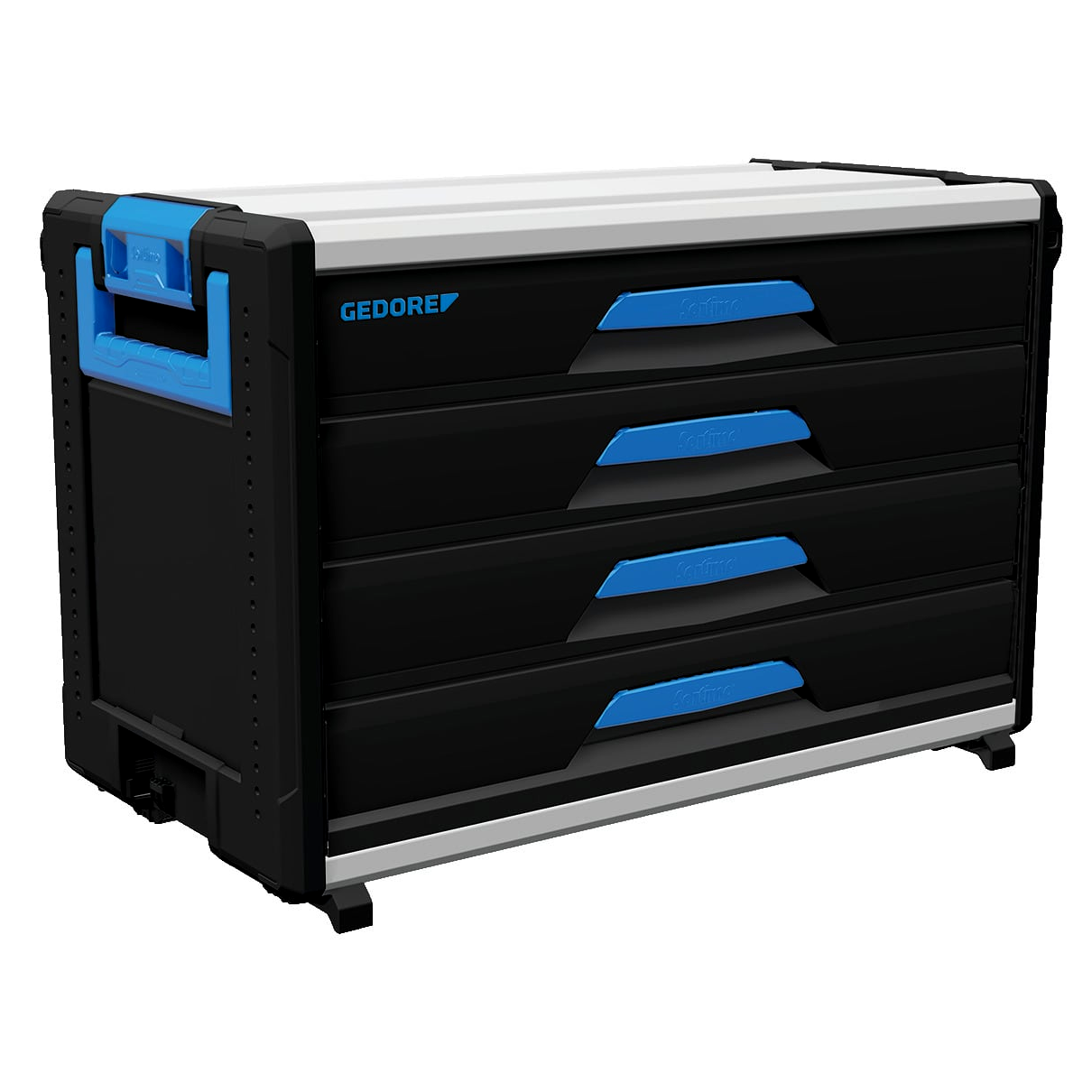 - 4 teljesen kihúzható fiók: A fiókok könnyen hozzáférhetőek és ideálisak a GEDORE 1500 ES/1500 CT modulok tárolására.