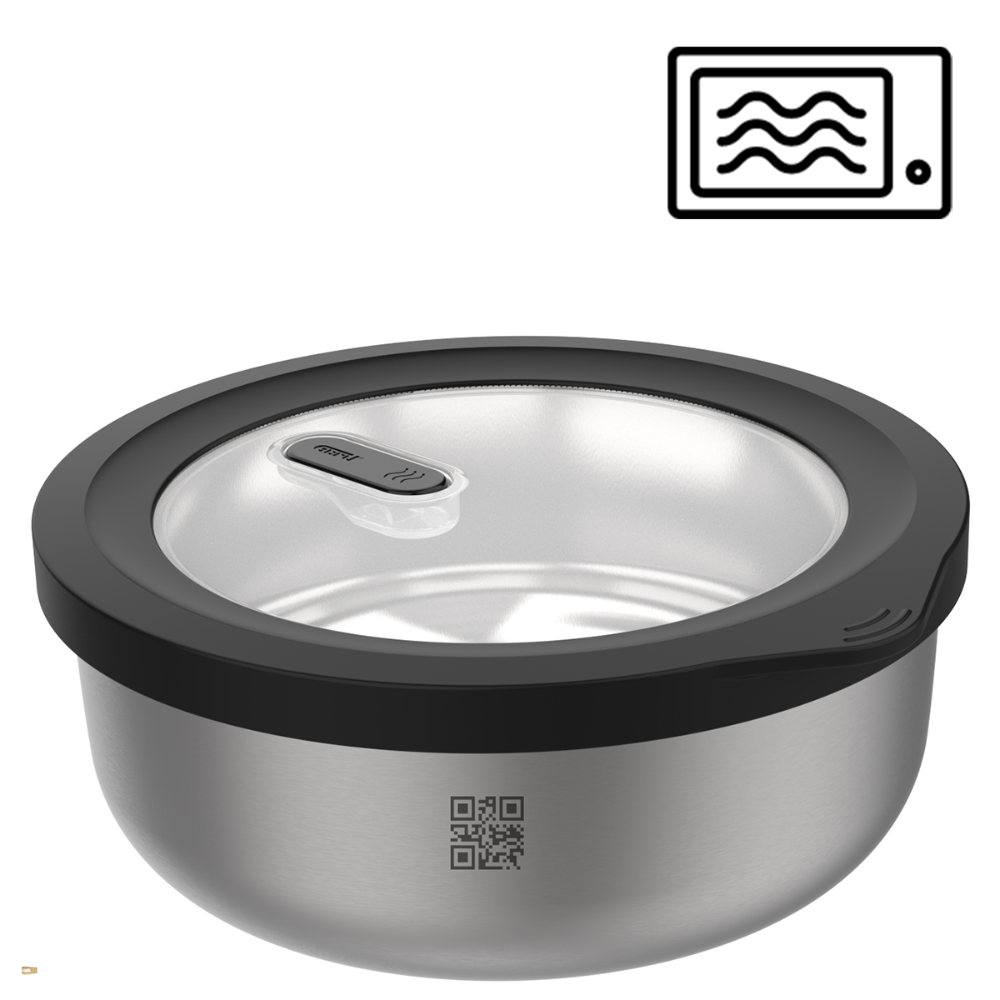 Gefu 12773 Rozsdamentes acél ételtároló edény tetővel 2L- Ezüst/Fekete