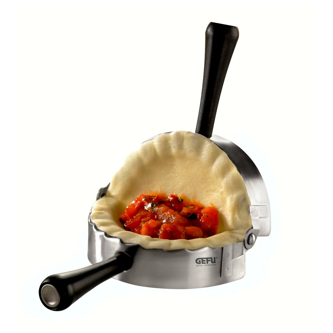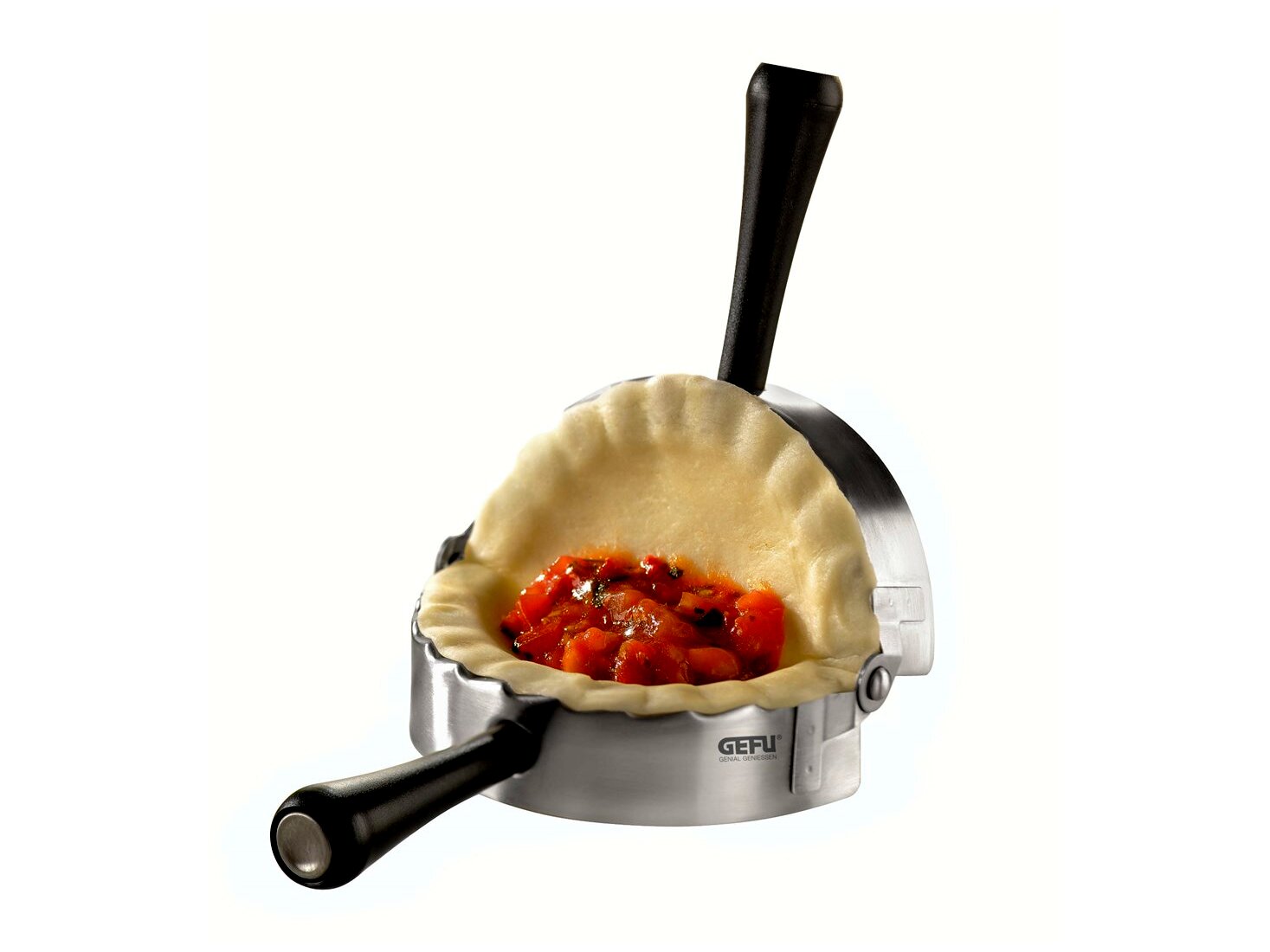 Praktikus forma friss ravioli vagy tésztafélék készítéséhez. Használja a forma alját a tészta kivágásához, helyezze a kivágott tésztát a forma belsejébe, majd töltse meg. Kenje meg a széleket tojásfehérjével, hajtsa össze, és már kész is. Ezután vegyük ki, és a szokásos módon süssük meg. A kiváló minőségű rozsdamentes acél és műanyag kombinációja mosogatógépben mosható.