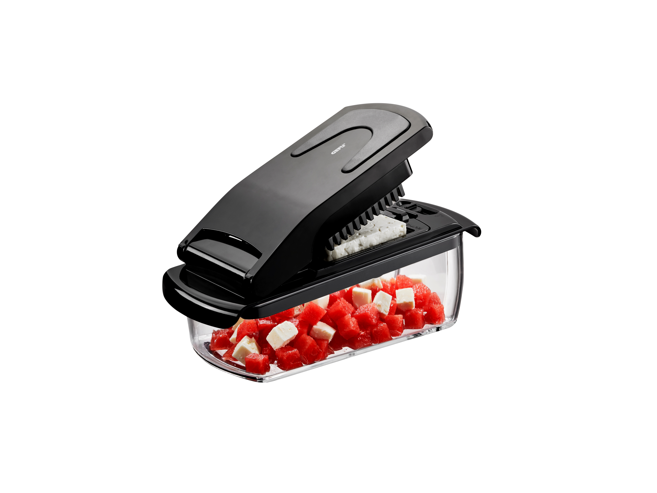 Nincs gyorsabb és kényelmesebb módja annak, hogy a gyümölcsökből és zöldségekből színes kockákat és sokoldalú pálcikákat készítsen. Az extra éles késbetétek biztosítják a könnyed vágást és az egyenletes eredményt - a finomtól az egészséges nyers zöldségekhez vagy levesköretekhez a durvábbig a chipsekhez vagy ízletes pörköltekhez. Tökéletes a feta sajt felkockázásához is.