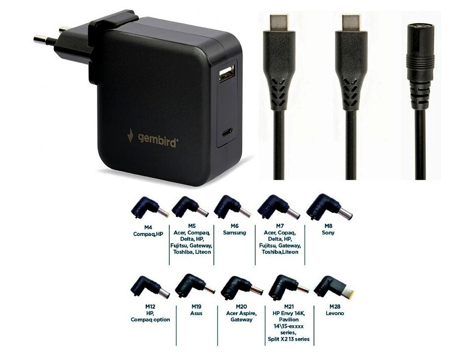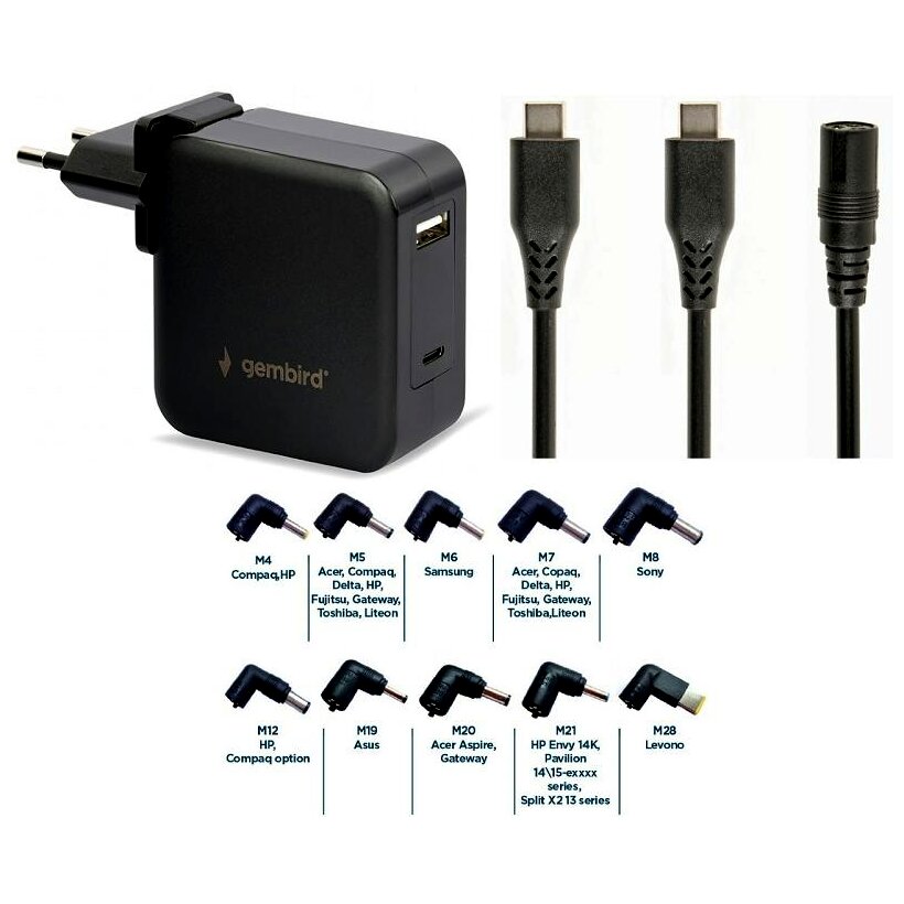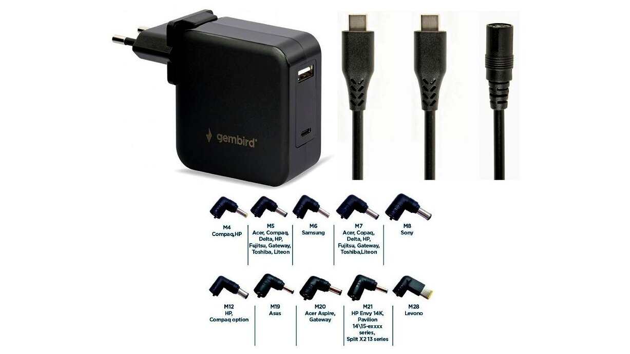 - Automatikusan beállítja a kimeneti feszültséget: csak válassza ki a megfelelő csatlakozót laptopjához