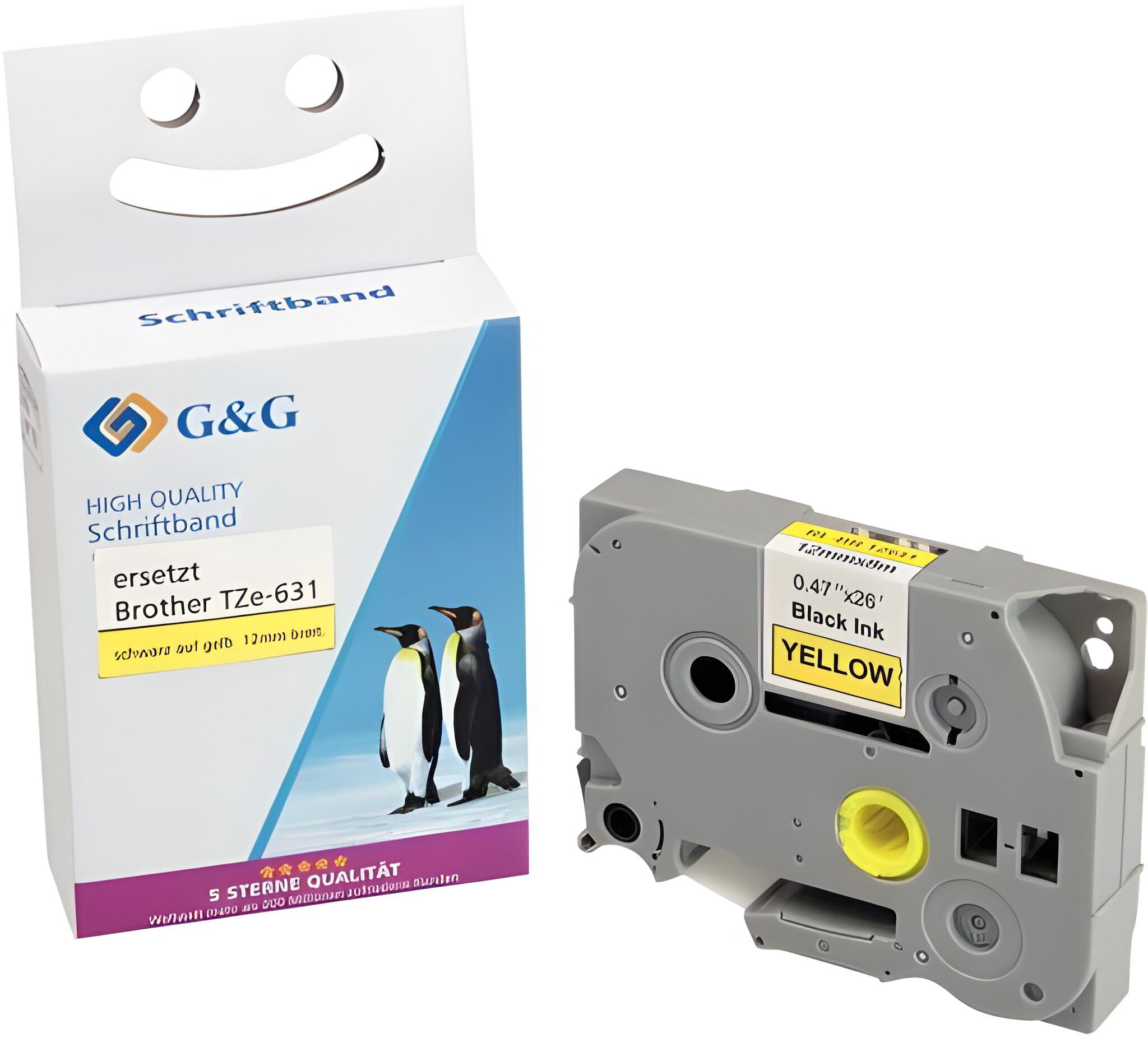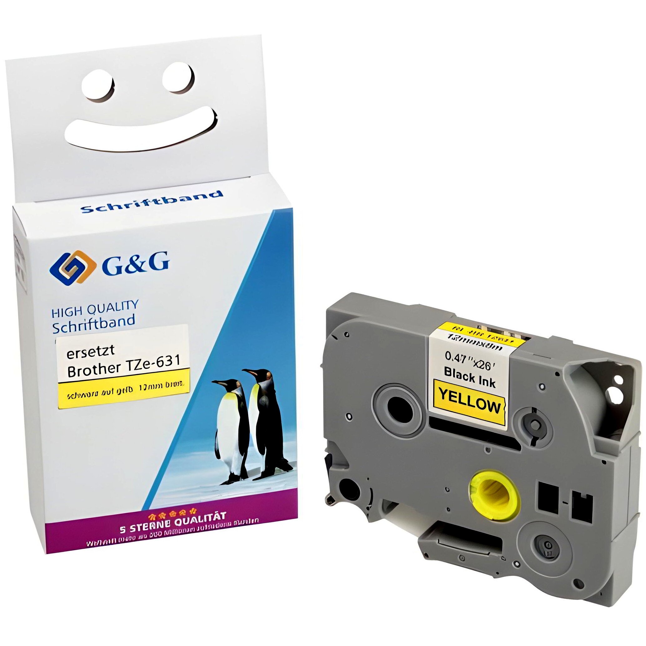 G&G Feliratozógép szalag - 12mm / 8m - Sárga alapon fekete
