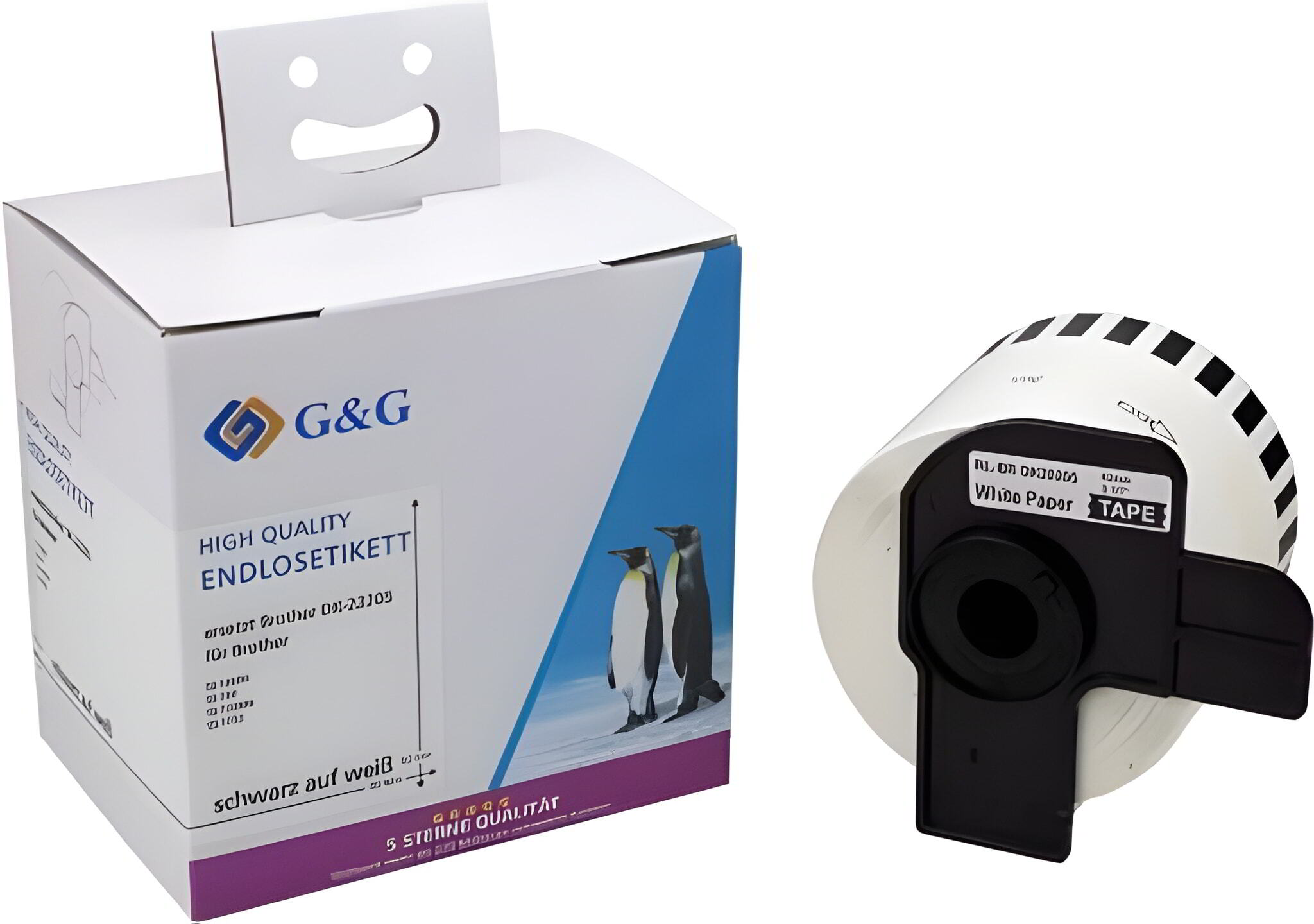 G&G DK-22205 Folytonos Feliratozószalag 62mm x 30,48m - Fehér alapon fekete