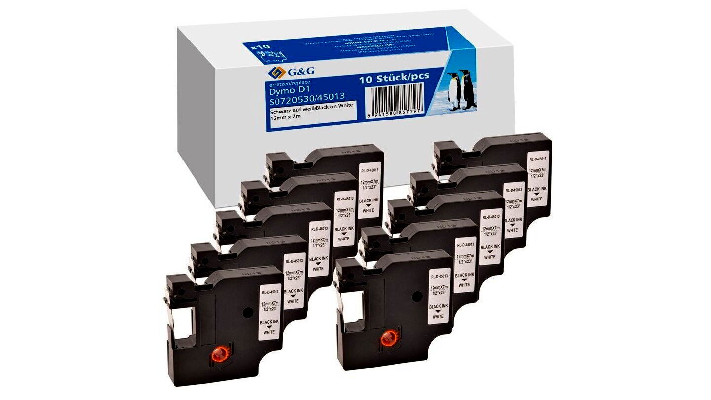 G&G (Dymo D1/45013/S0720530) 12mm / 7m 10x Feliratozógép szalag - Fehér alapon fekete