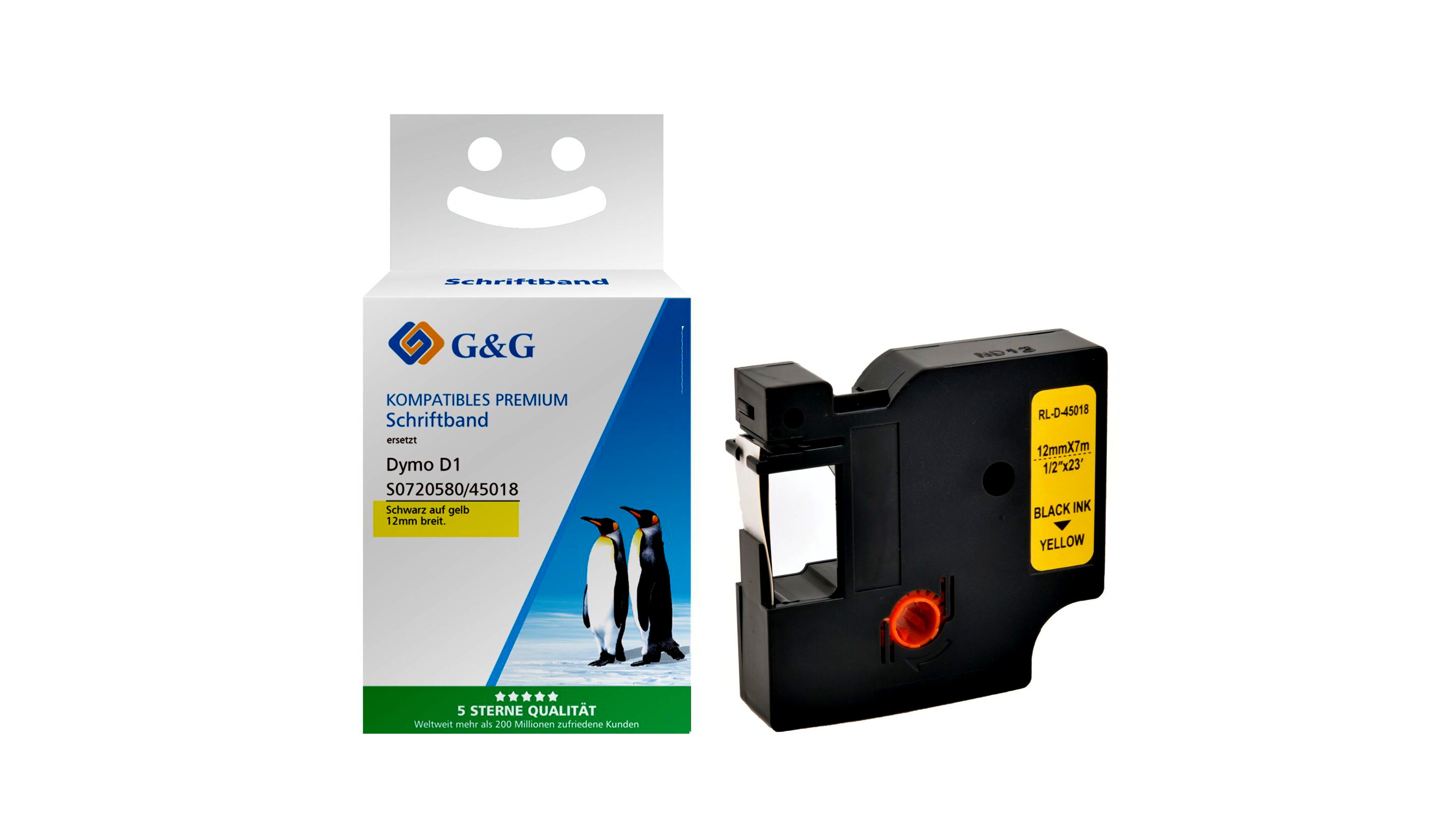 Kompatibilitás: A szalag teljes mértékben kompatibilis a Dymo D1 szériával, beleértve a Dymo 45018 és S072058 modelleket is, így zökkenőmentes használatot biztosít.