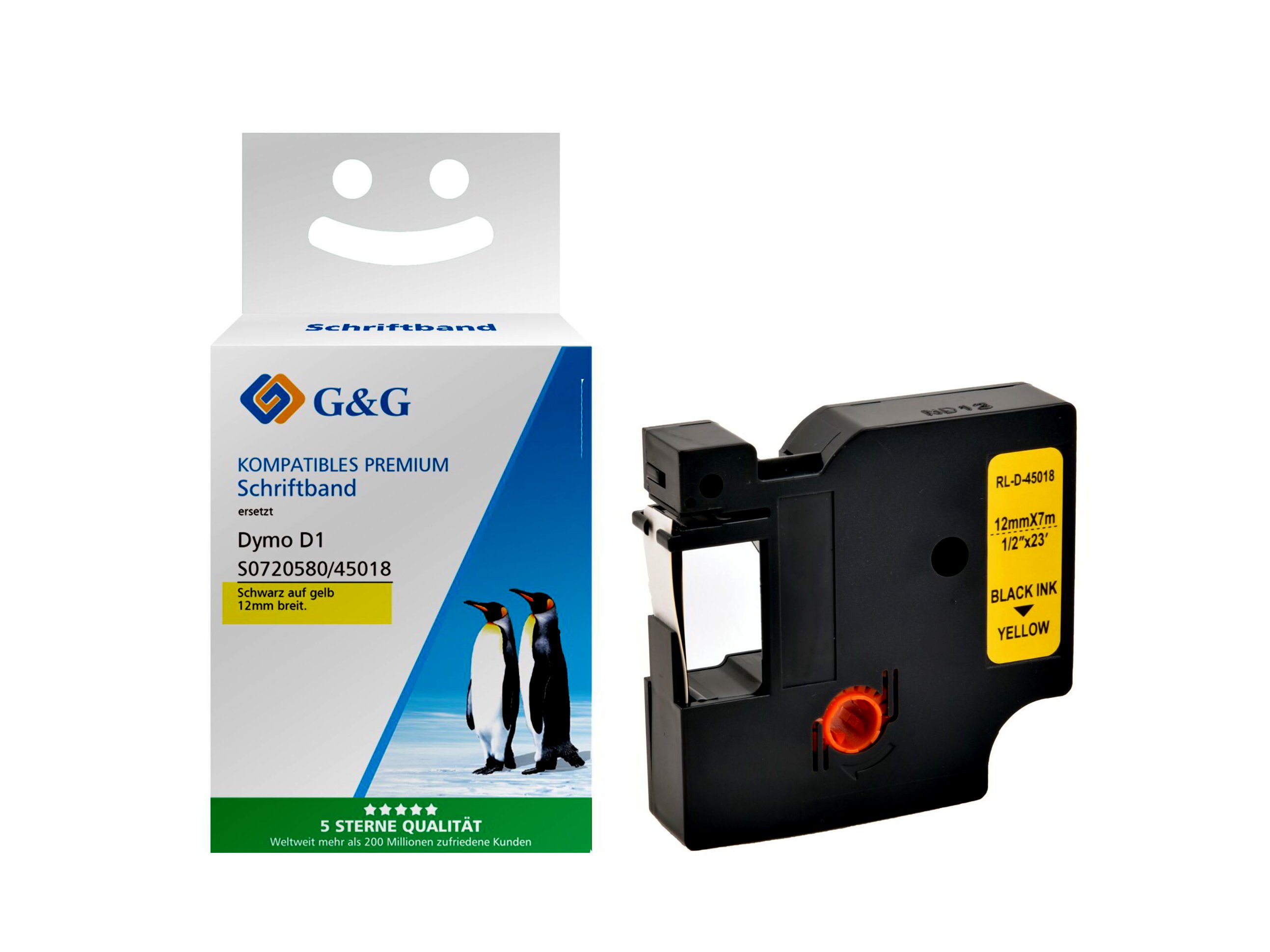 G&G Feliratozógép szalag - Sárga alapon fekete, 12mm / 7m