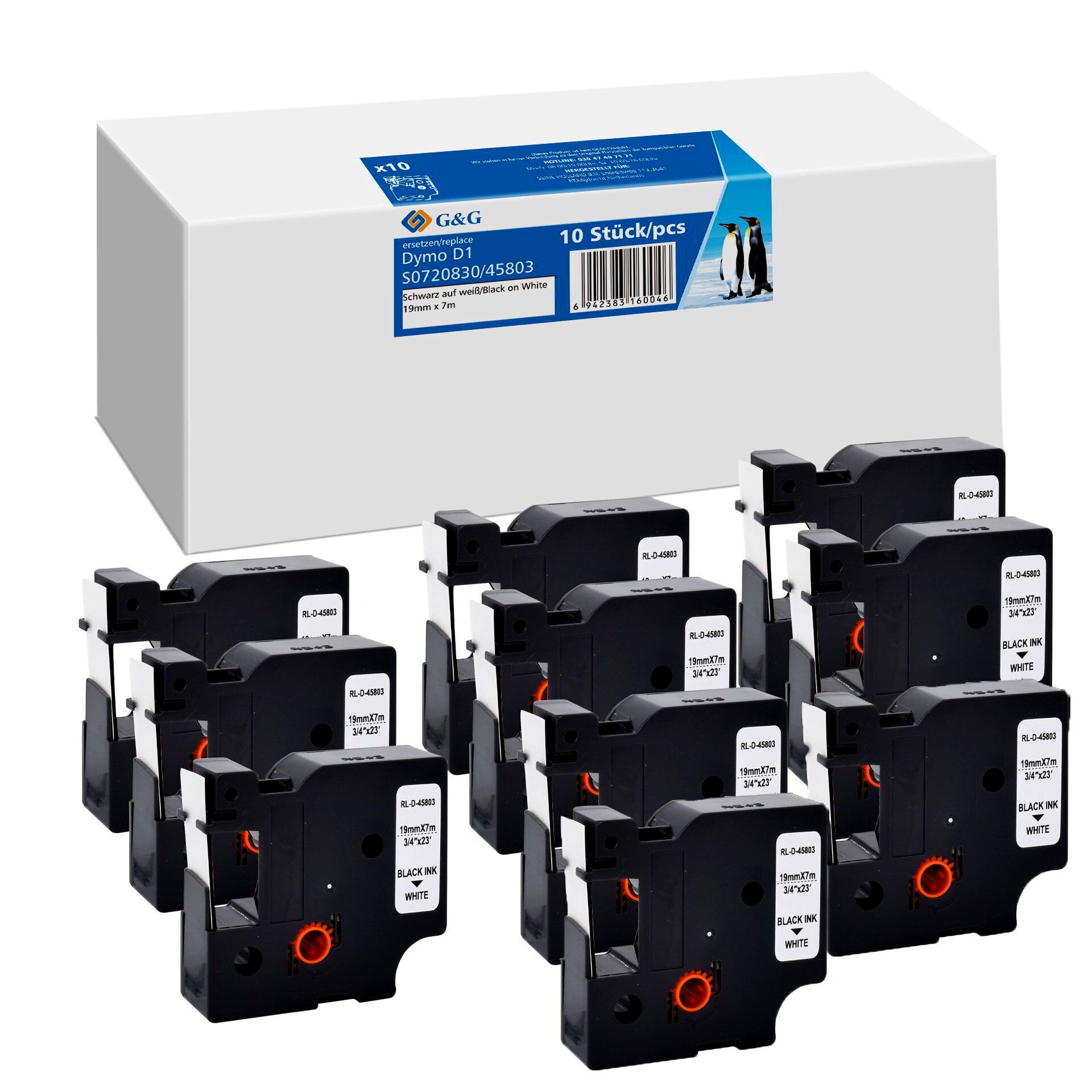 G&G (Dymo D1/45803/S0720830) 19mm / 7m 10x Feliratozógép szalag - Fehér alapon fekete