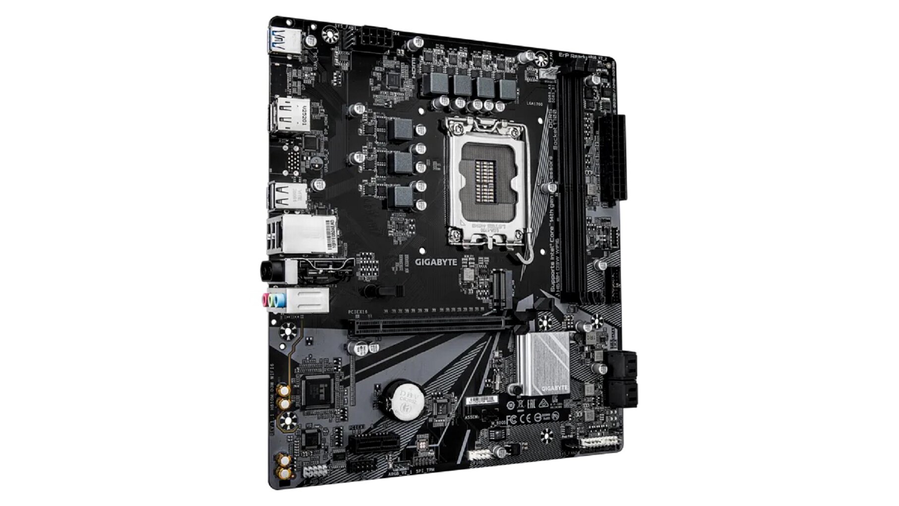 Ez a Micro ATX formátumú megoldás ideális választás kompakt, mégis nagy teljesítményű játékos vagy munkagép építéséhez. Támogatja a legújabb Intel 14., 13. és 12. generációs processzorokat, a gyors DDR5 memóriát, a PCIe 4.0-s videokártyákat, valamint a Wi‑Fi 6 vezeték nélküli hálózatot és a Bluetooth 5.3-at – mindezt jól átgondolt csatlakozókiosztással.