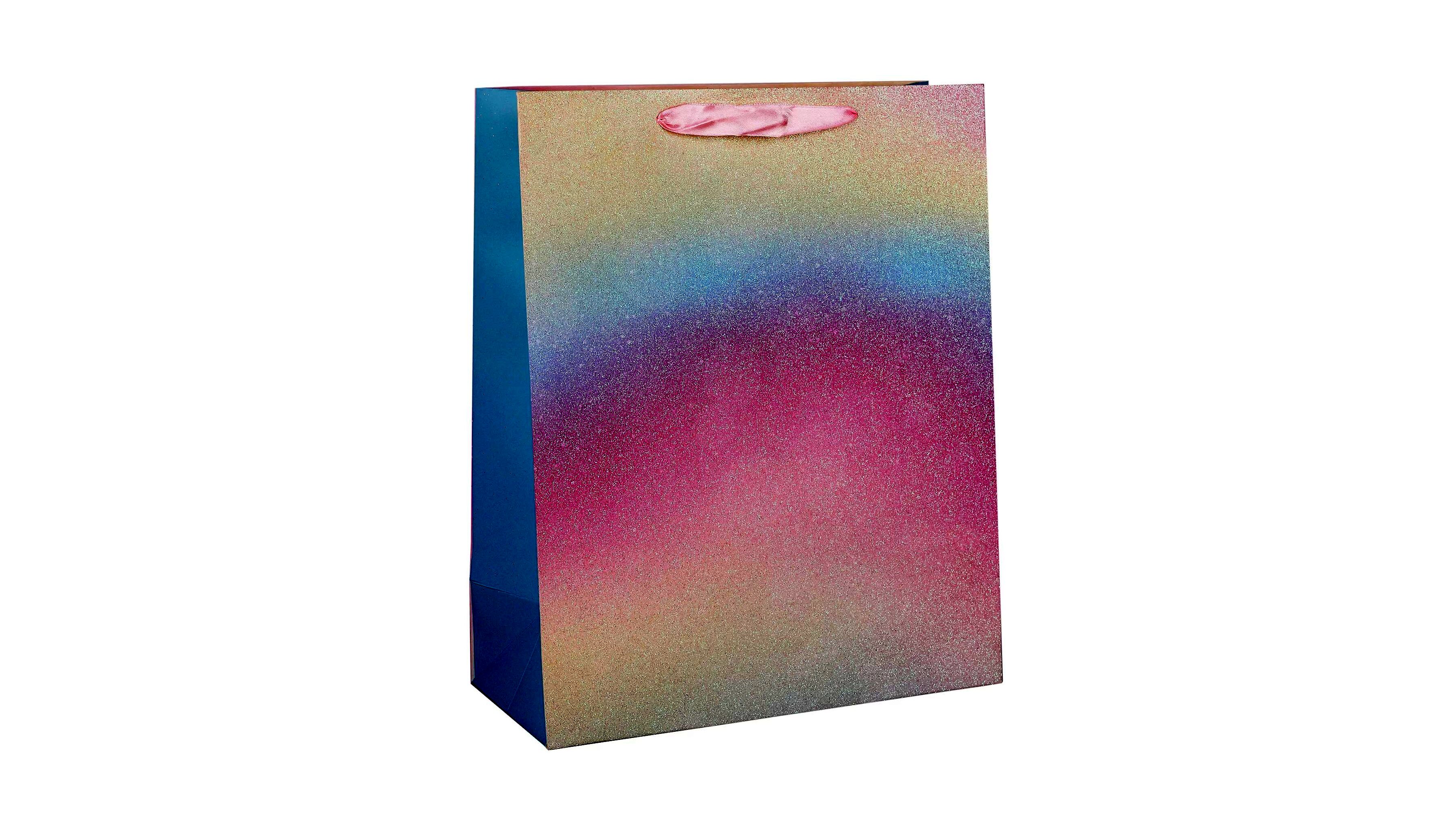 Emelje új szintre az ajándékozás élményét ezzel a káprázatos glitteres szivárványos ajándékzacskóval! Kényeztesse szeretteit és barátait, és tegye különlegessé a fontos pillanatokat egyedi és stílusos csomagolással.