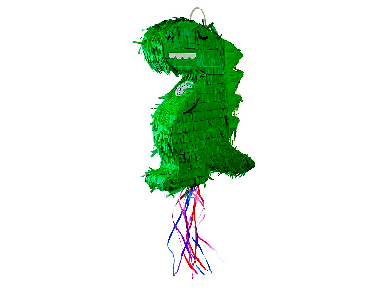 Ezzel a zöld dínó pinatával még különlegesebbé tehető a születésnap vagy összejövetel. A dínó megtölthető mindenféle édességgel vagy apró meglepetéssel, amit egy bottal tud az ünnepelt szétütni, bekötött szemmel. A pinata egy zsinorral fellógatható bárhová. Anyaga: karton és kreppapír.