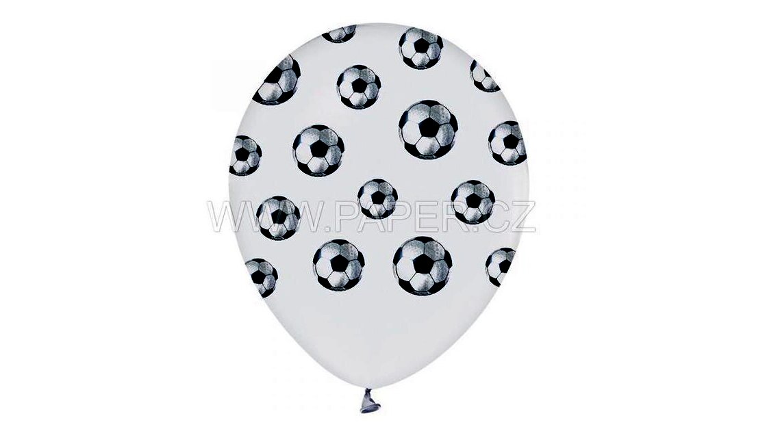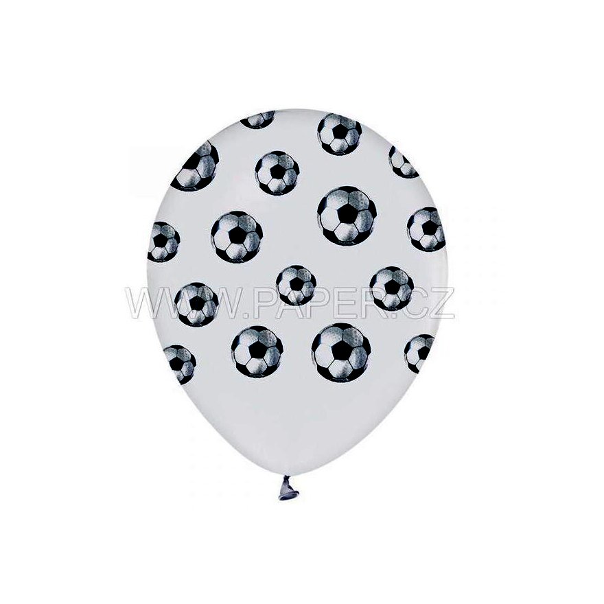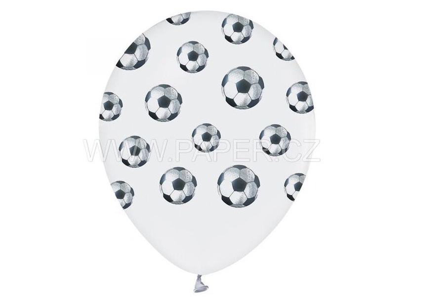 Focilabda mintás, fehér színű lufi. Mérete: 30 cm.