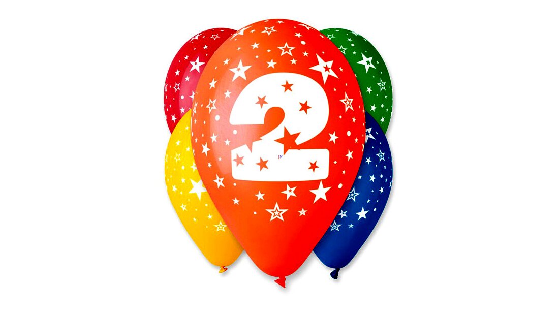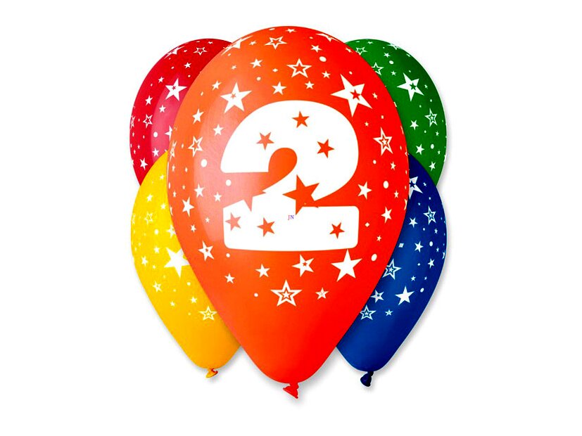 Gumiból készült, 2-es számot ábrázoló mintával ellátott lufik, vegyes színekben. A készlet 5 db lufit tartalmaz, ezekkel feldobhatod a saját vagy barátaid buliját! Csomagolás méretei: 14 x 20 x 3 cm