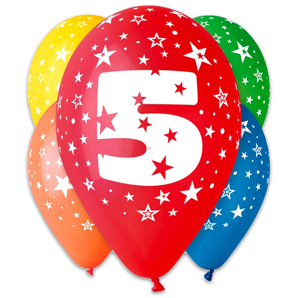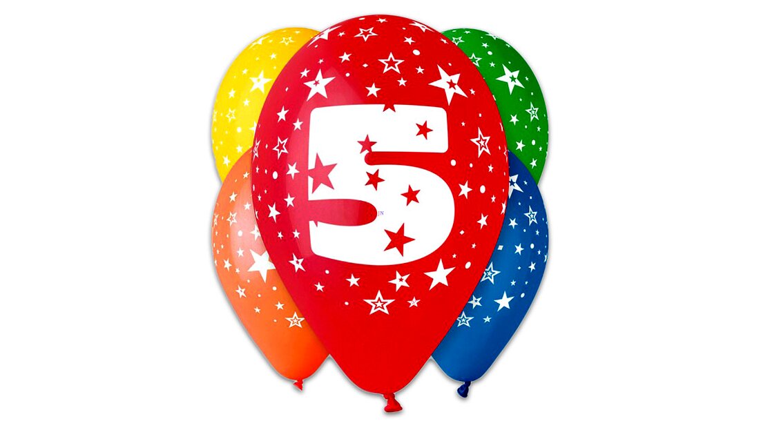 Gumiból készült, 5-ös számot ábrázoló mintával ellátott lufik, vegyes színekben. A készlet 5 db lufit tartalmaz, ezekkel feldobhatod a saját vagy barátaid buliját! Csomagolás méretei: 14 x 20 x 3 cm