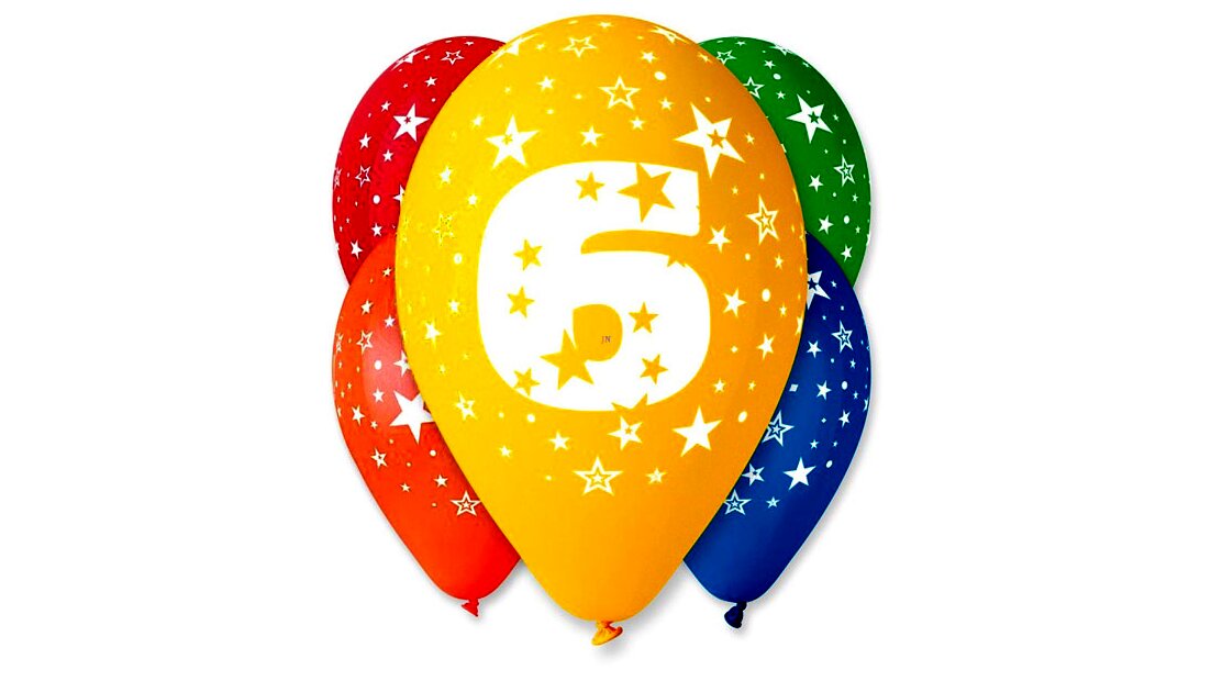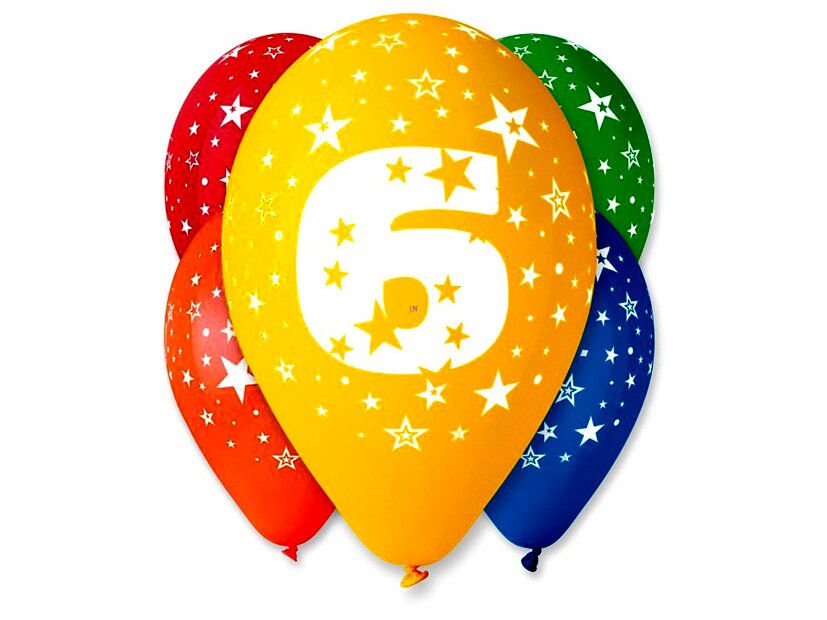Gumiból készült, 6-os számot ábrázoló mintával ellátott lufik, vegyes színekben.