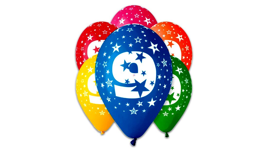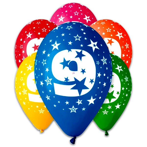 Gumiból készült, 9-es számot ábrázoló mintával ellátott lufik, vegyes színekben. A készlet 5 db lufit tartalmaz, ezekkel feldobhatod a saját vagy barátaid buliját! Csomagolás méretei: 14 x 20 x 3 cm