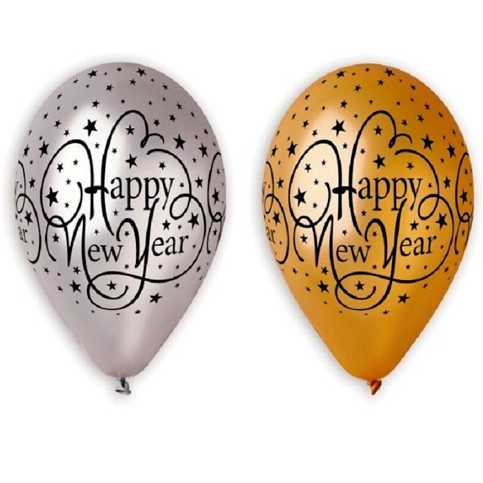 Happy New Year feliratos lufi csomag arany és ezüst színekben. Tökéletes választás az otthoni bulihoz, barátokhoz, céges évzáróhoz új év köszöntő dekorációnak.