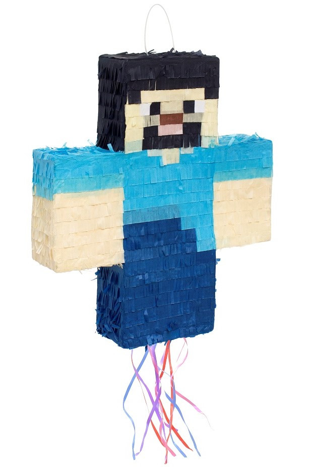 A Minecraft egyik közkedvelt karaktere, Steve alakú megtölthető pinata születésnapi bulikra.