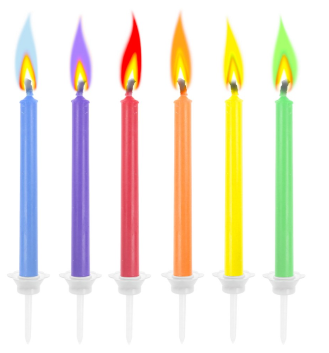 Dobd fel a szülinapi tortát színes lángú torta gyertyákkal! A gyertyák olyan színű lánggal égnek mint amilyen színű a gyertya maga.