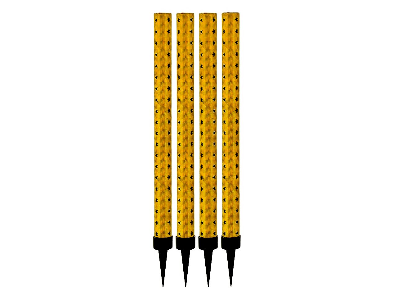 Arany színű torta tűzijáték az emlékezetes ünnepléshez. Ez a csomag 4 db, arany-fekete csillag mintás, 25 cm-es tűzijátékot tartalmaz.