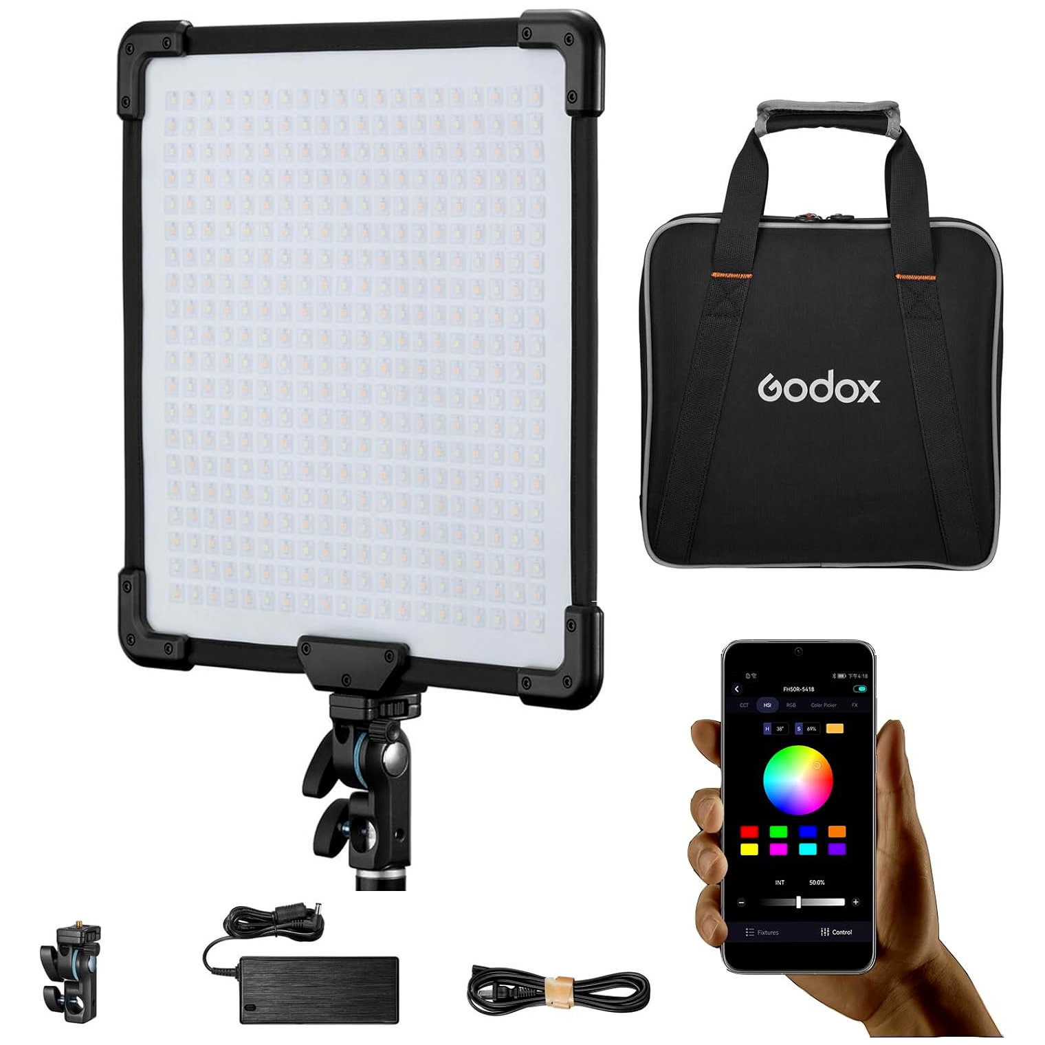 A távirányító (opcionális) és a Godox Light alkalmazás vonzóvá teszi ezt a lámpát a távvezérlést igénylő felhasználók számára, lehetővé téve a világítás gyors beállítását nehezen elérhető helyeken vagy fényképezés közben.