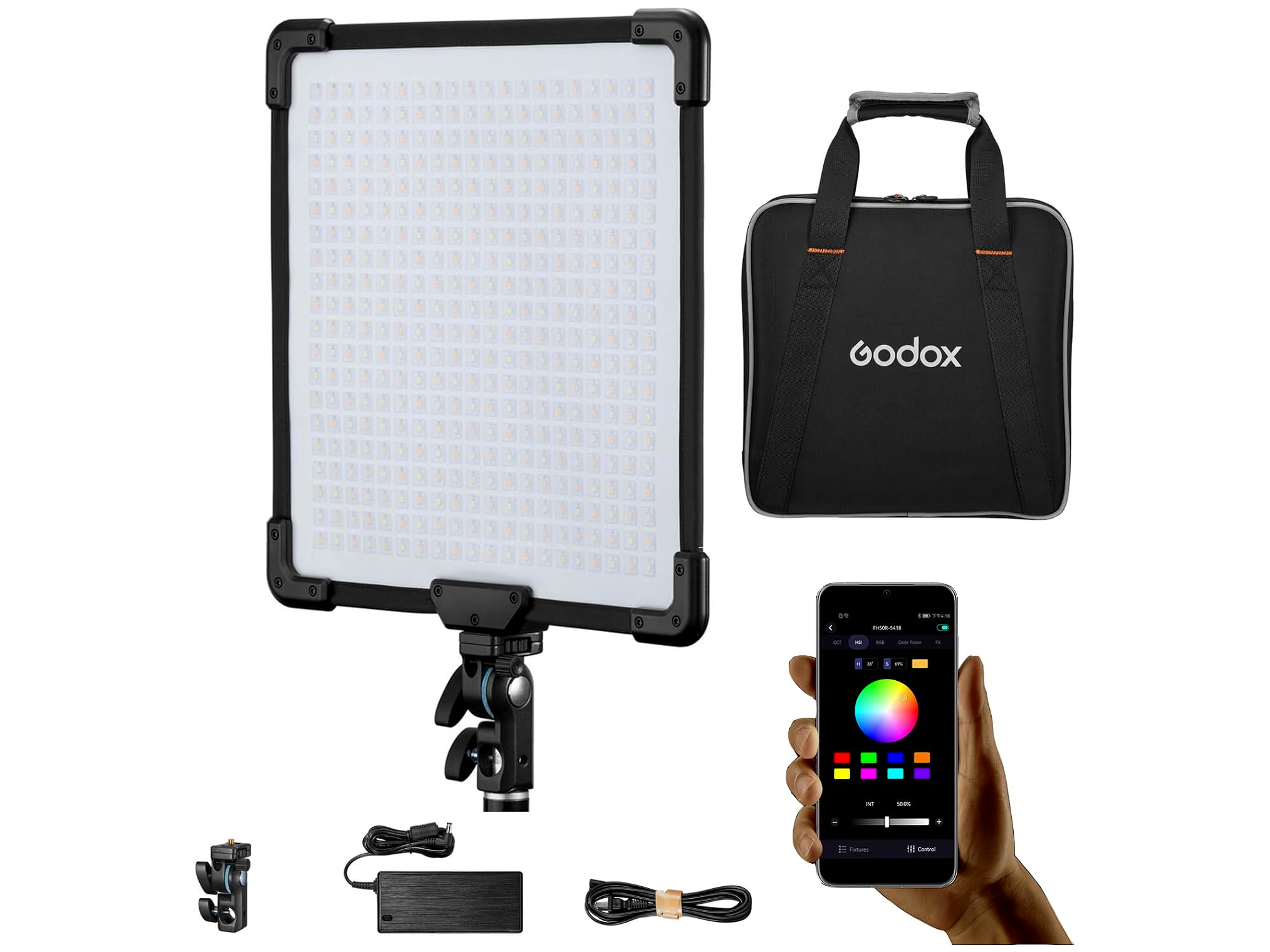 Az FH50Bi 360 fokos HSI vezérlése változatos színválasztékot tesz lehetővé, lehetővé téve, hogy elragadó színekkel kísérletezve szeszélyessé tegye alkotásait. Az állítható színhőmérséklet FH50Bi:2800-6500K biztosítja a különböző fényviszonyokhoz való alkalmazkodást.