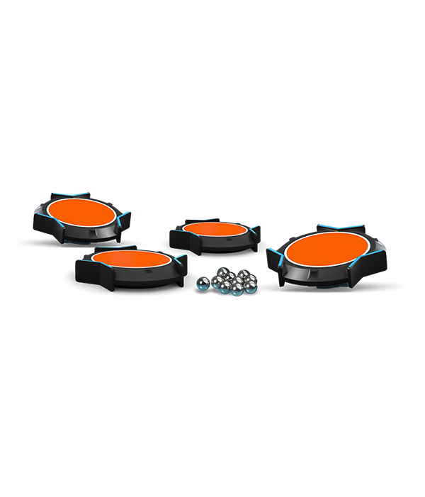 Trambulin kiegészítő Boomtrix pályákhoz. A Boomtrix egy különleges golyópálya szett. A lényeg, hogy a golyópályát úgy kell összeállítani, hogy a golyó akadály nélkül végig ugrálhasson rajta. A siker pár milliméteren is múlhat. Fontos a koncentráció, a szemmérték és az ügyesség is. A csomagolás 10 db golyót, 4 db trambulint és 2 db trambulin tartó lábad tartalmaz.