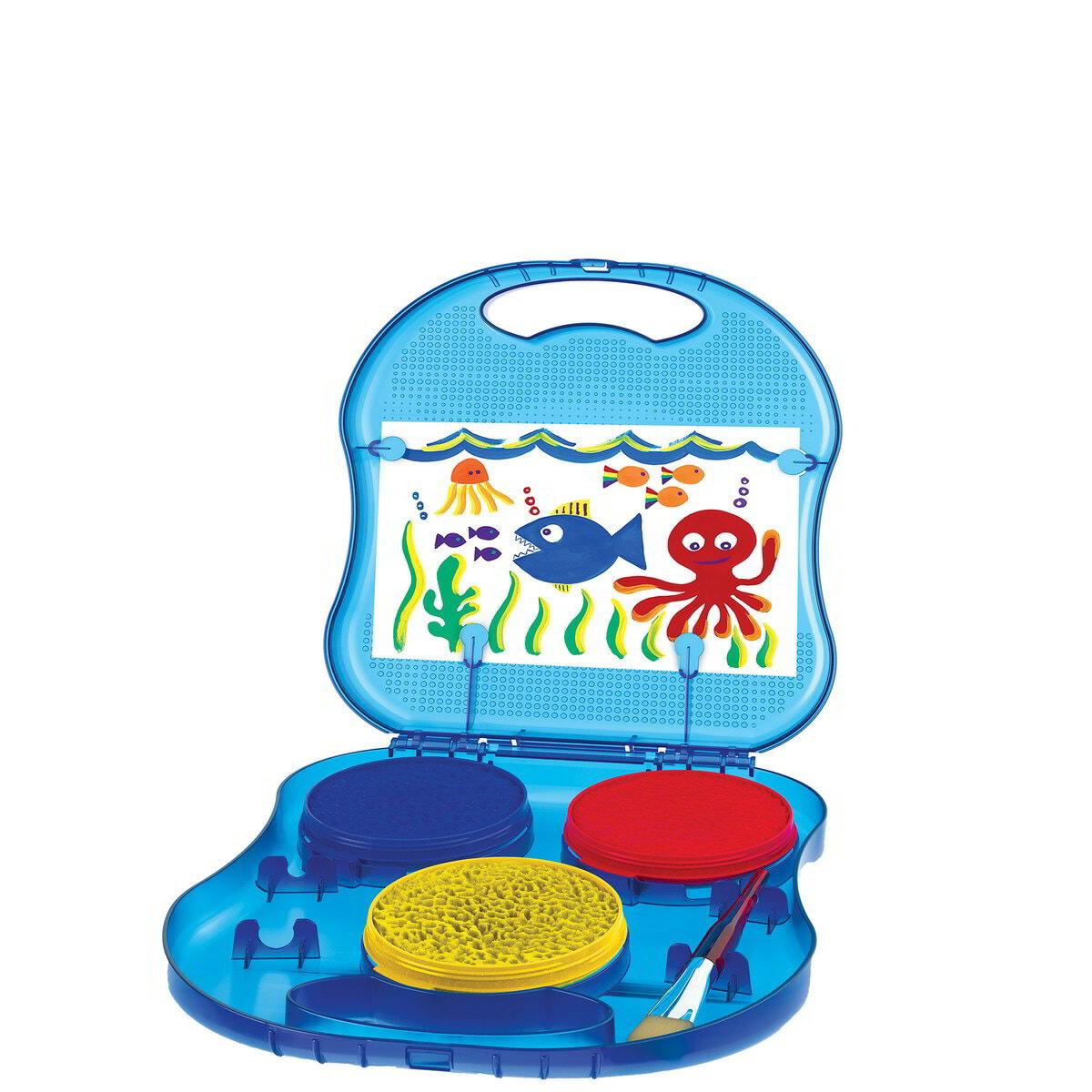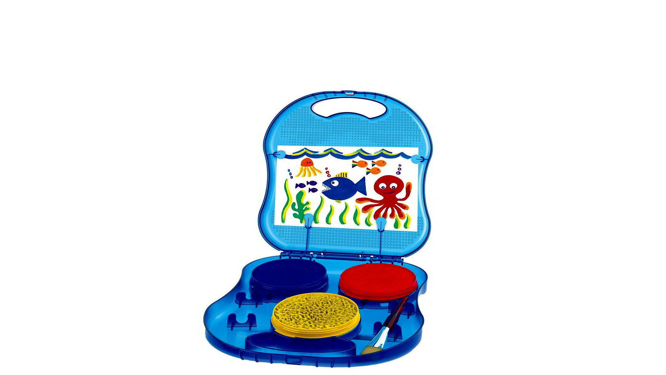 A hordozható kistáskában könnyedén és praktikusan elhelyezhető 3 db festékszivacs, amellyel egyszerű, víz- és cseppmentes a festés, így nem kell félni attól, hogy minden maszatos lesz. A táska festőállvánnyá alakítható. Az állványon a papír könnyedén cserélhető, így a gyerekek egyedül is bele tudnak kezdeni új alkotások készítésébe.