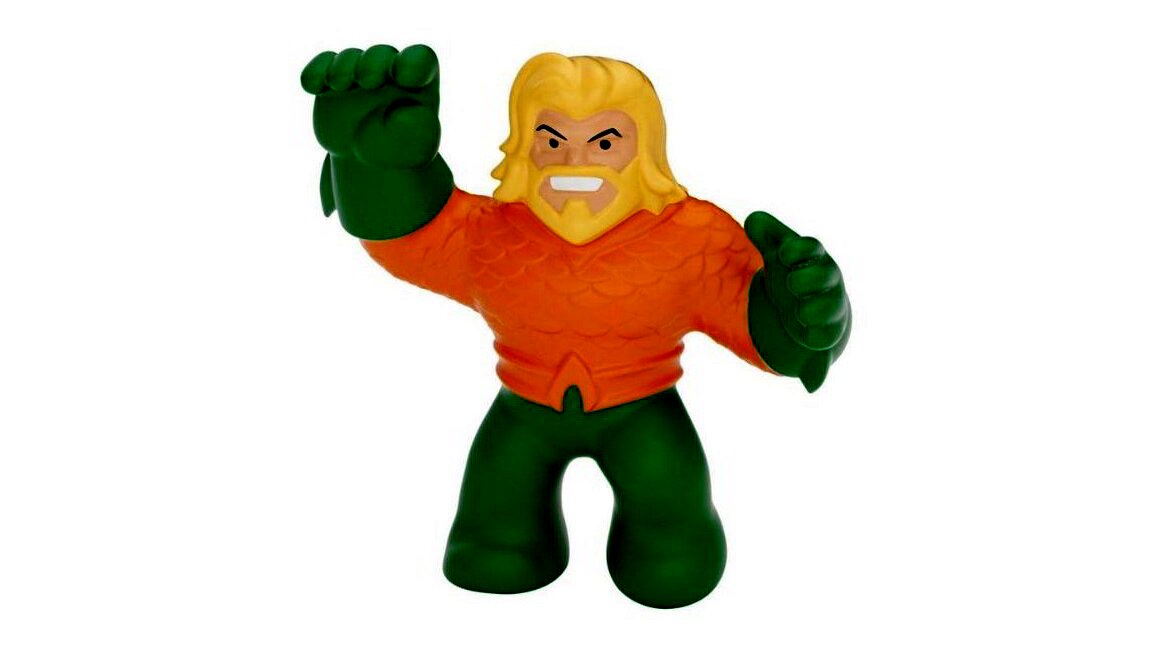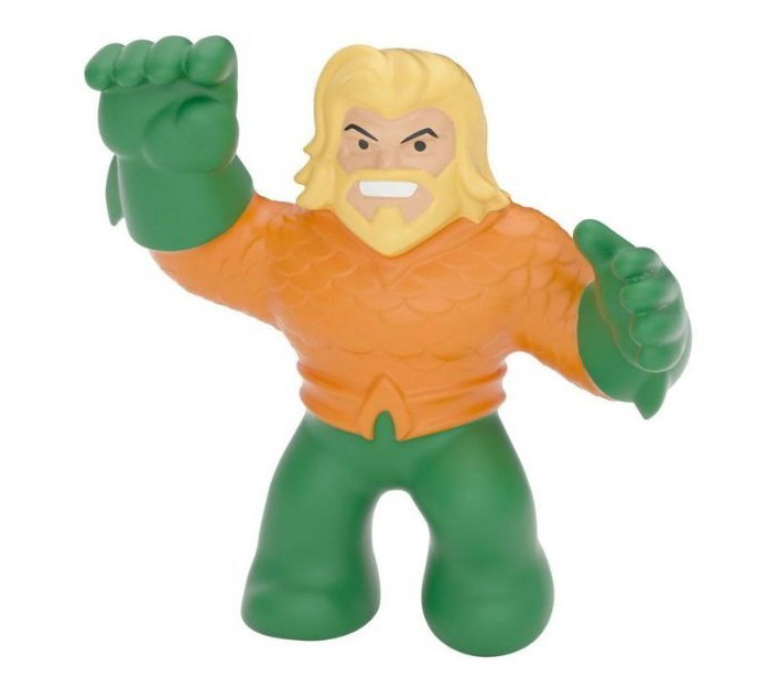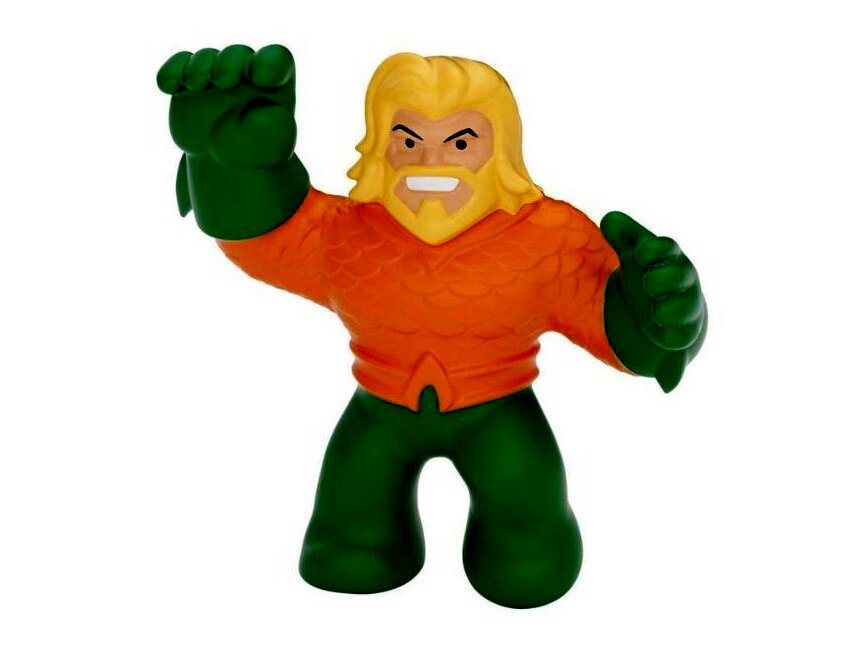 A Goo Jit Zu hősei most szuperhős formát öltöttek és egyedi GOO töltelékkel rendelkeznek. Zselés testük összenyomható, tekerhető végtagjaik hosszúra nyúlnak a különleges anyagtöltetnek köszönhetően. A gyerekek most kedvenc DC Comics karakterükkel, Aquamannel játszhatnak, akinek különleges képességei most még különlegesebbek a Goo Jit Zu világában.