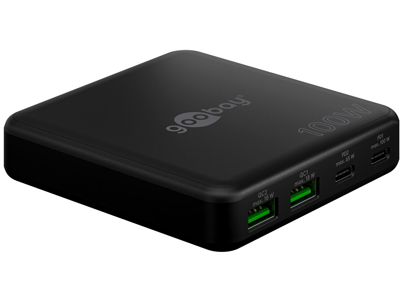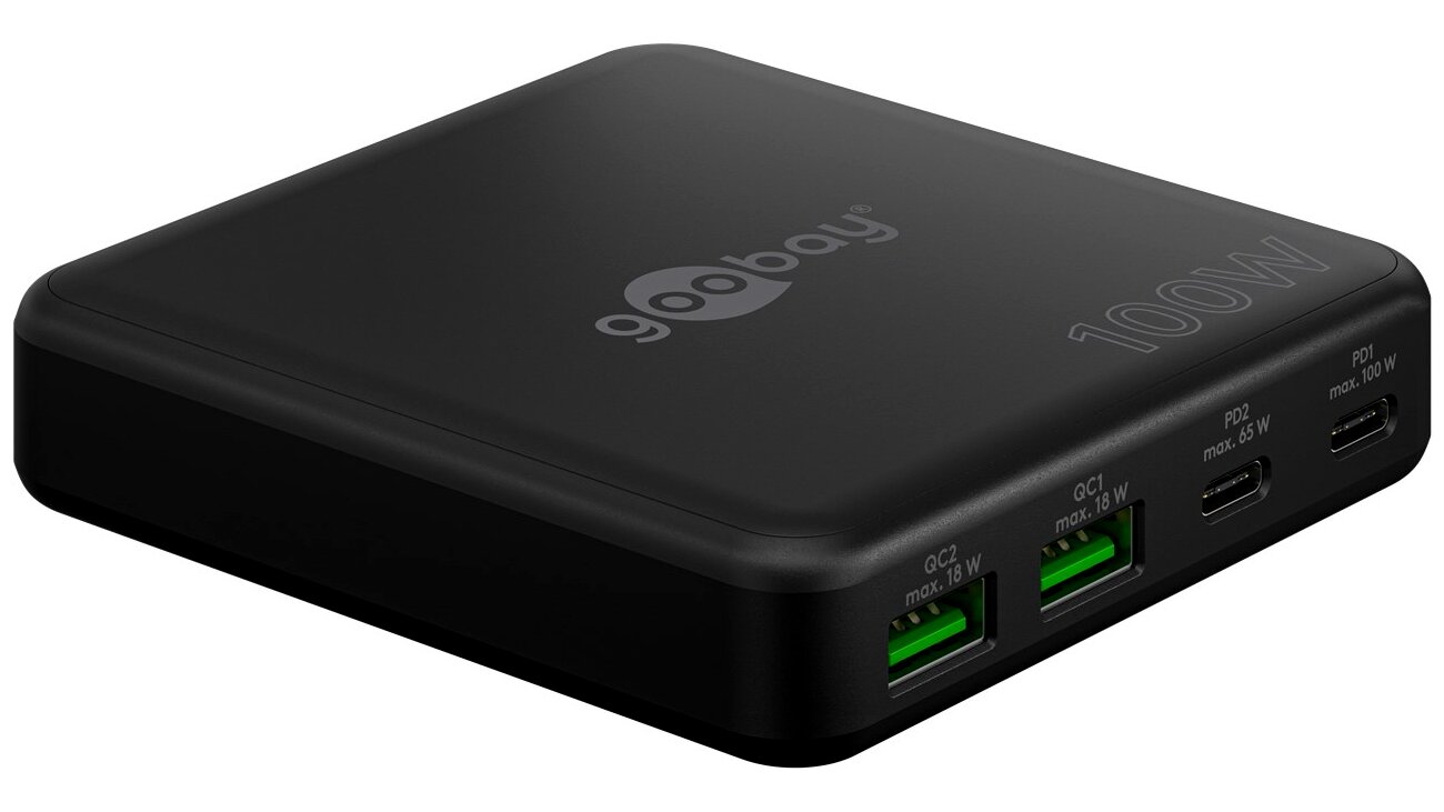 Goobay 2xUSB-A / 2xUSB-C Hálózati Gyorstöltő Adapter 100W - Fekete