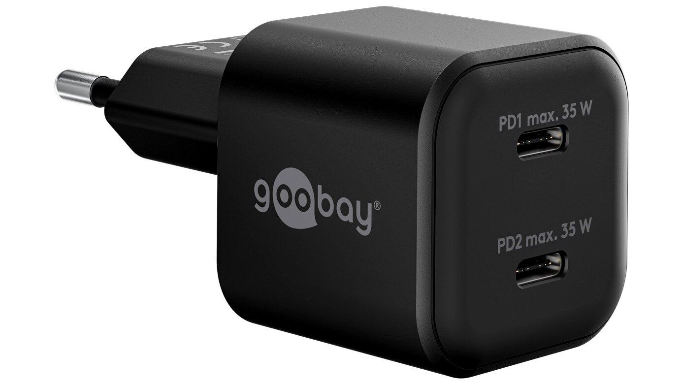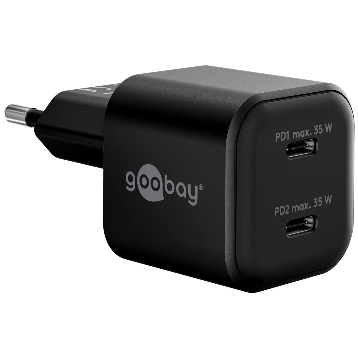 Goobay 75333 Dual Nano USB-C GaN Hálózati Gyorstöltő Adapter Készlet 35W - Fekete (2 darabos)