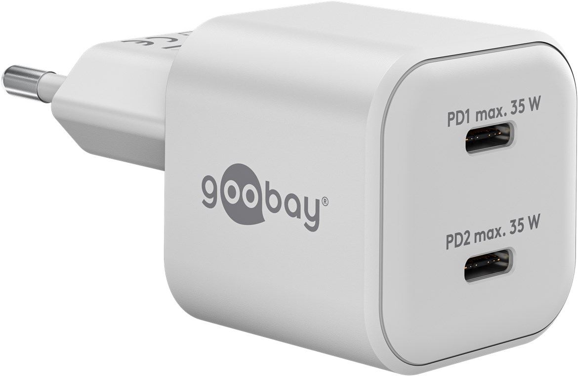 Goobay Dual Nano USB-C GaN Hálózati Gyorstöltő Adapter Készlet 35W - Fehér
