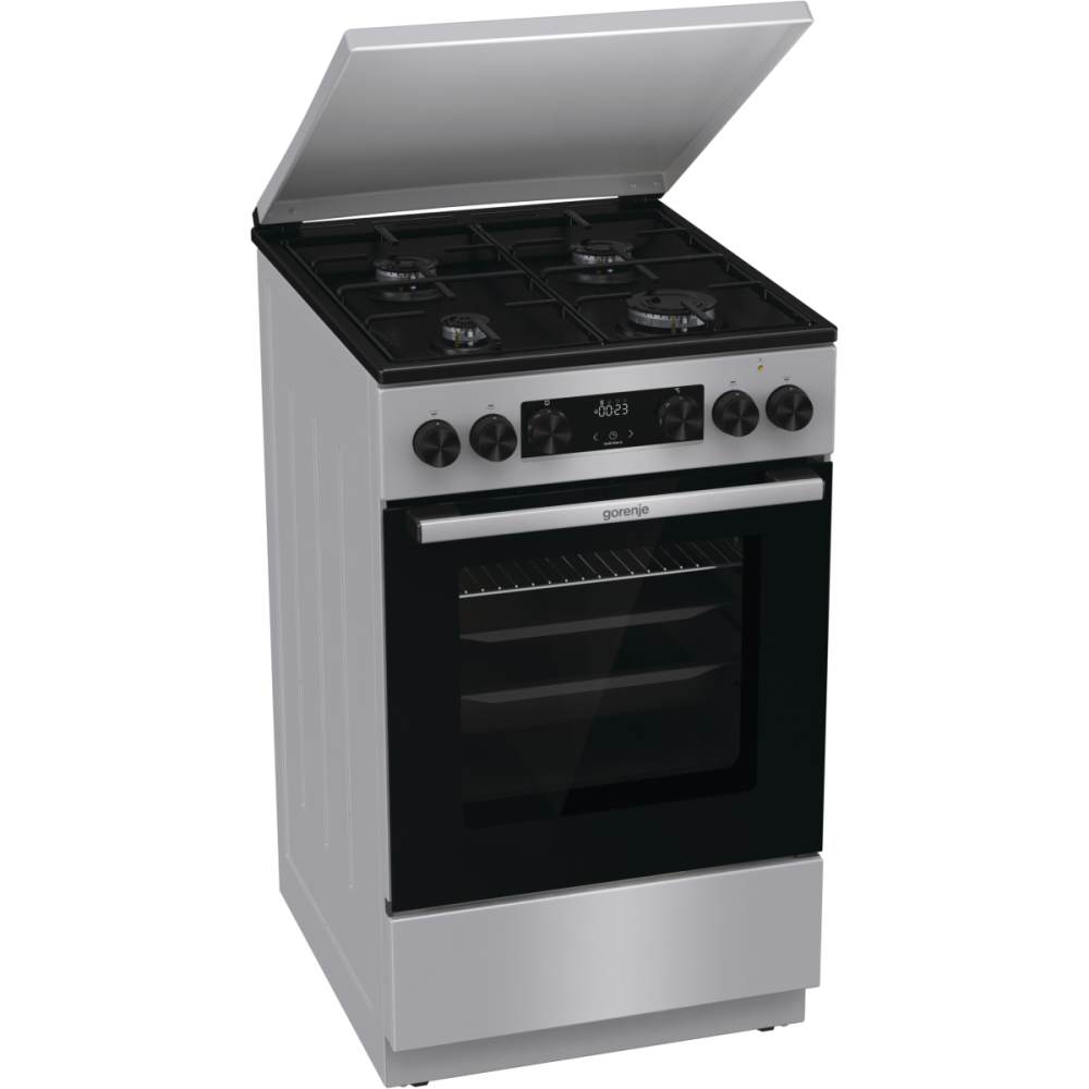 A Gorenje GK5C42SJ kombinált tűzhely egyaránt rendelkezik gáz- és elektromos funkcionalitással, így biztosítva a változatos főzési lehetőségeket. Tökéletes választás mindenkinek, aki szereti a hagyományos gázfőzés hatékonyságát, de nem akar lemondani az elektromos sütők precizitásáról sem. A Gorenje márka hosszú évek óta elismert kiváló minőségű háztartási készülékeiről, így biztos lehet benne, hogy megbízható és tartós berendezést kap.
