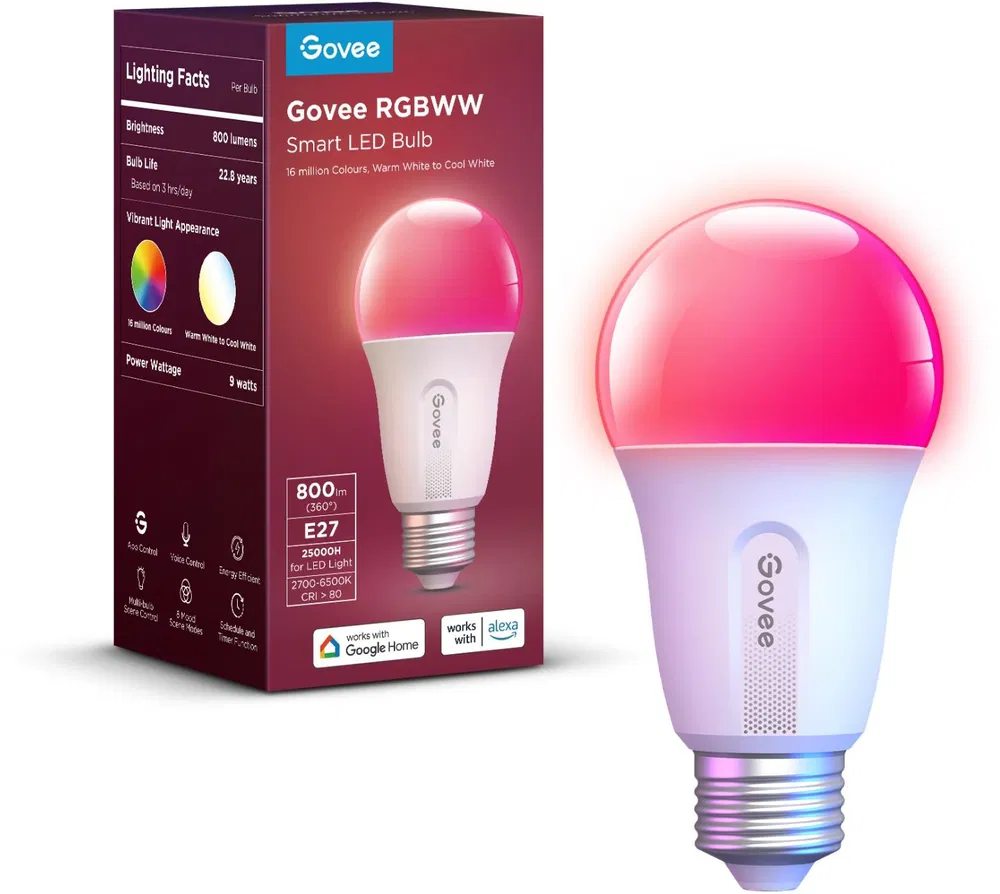Intelligens világítás a Govee Smart Wifi&Bluetooth LED Izzóval