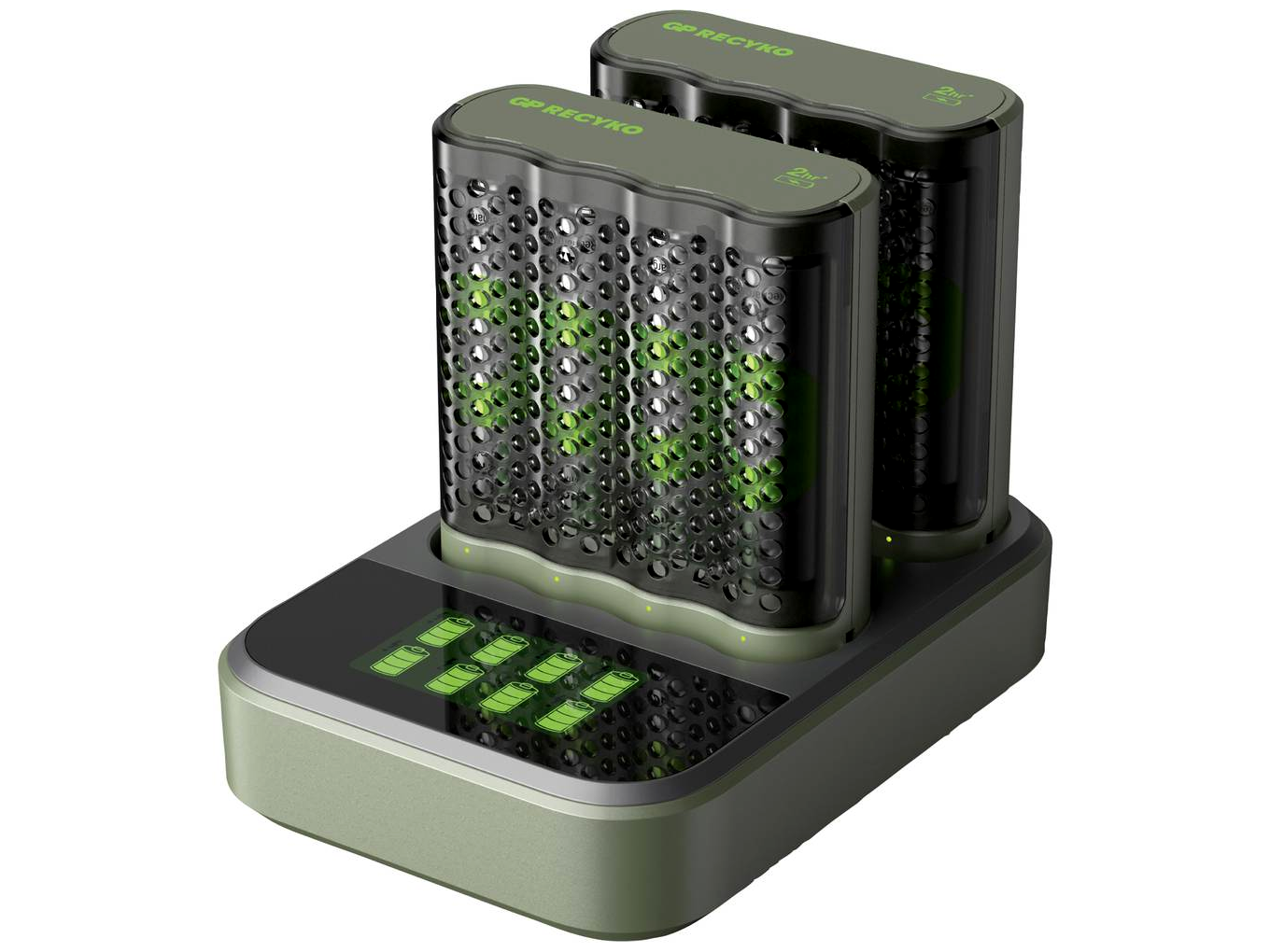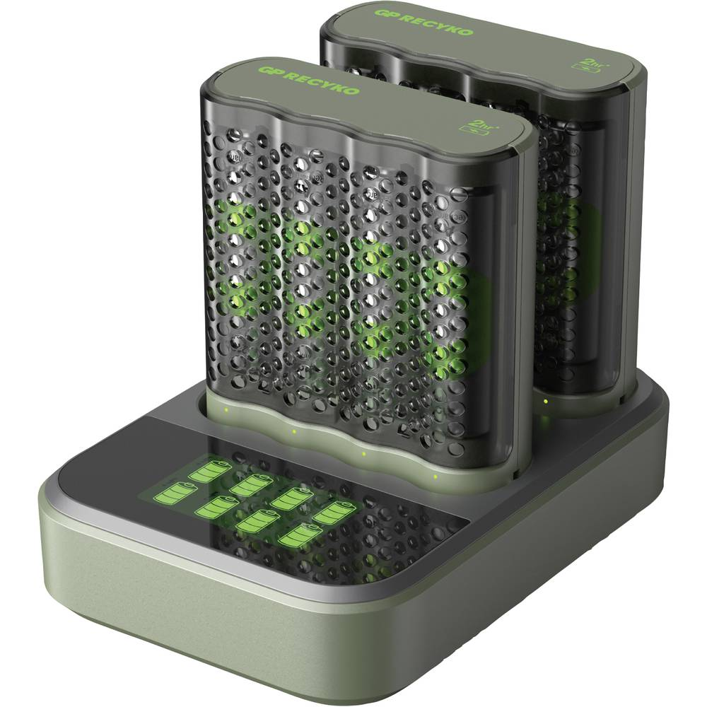 GP ReCyko M452 8port LCD Modell AA/AAA NiMH Akkumulátor töltő + 4db elem (4xAA - 2600mAh)