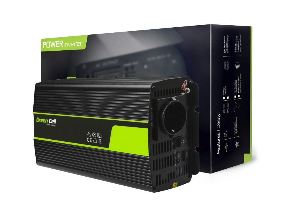 - Sokoldalú és adaptálható - A Green Cell inverter nemcsak Schuko aljzattal ellátott, hanem rendelkezik USB porttal is, amely kisebb eszközök, mint például okostelefon vagy táblagép töltésére alkalmas.