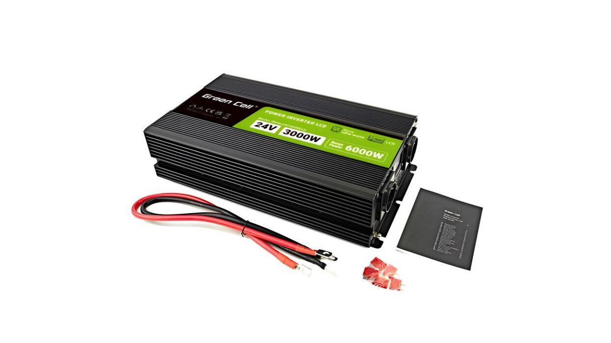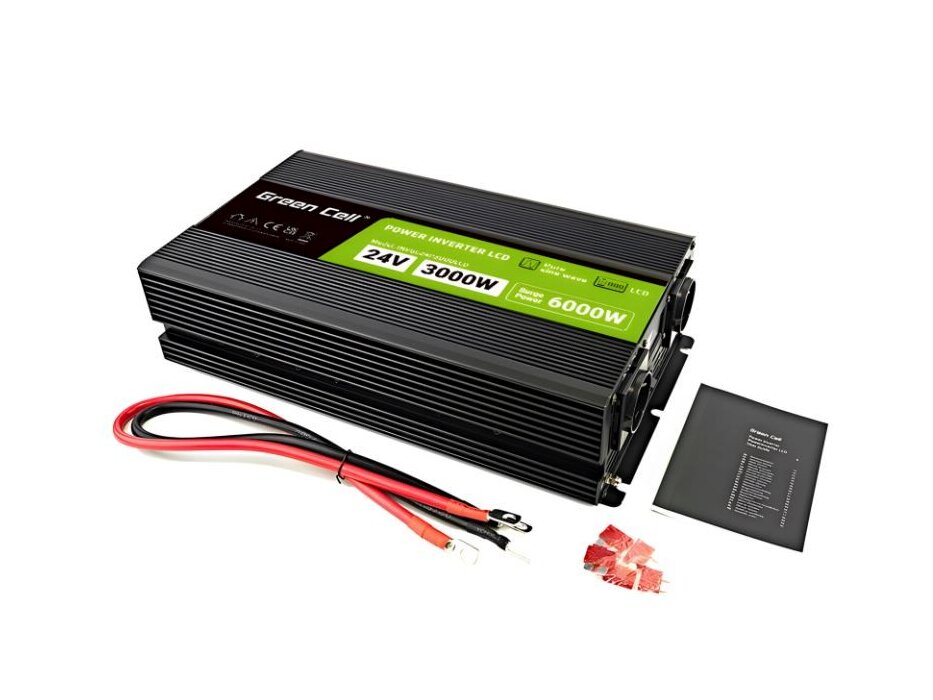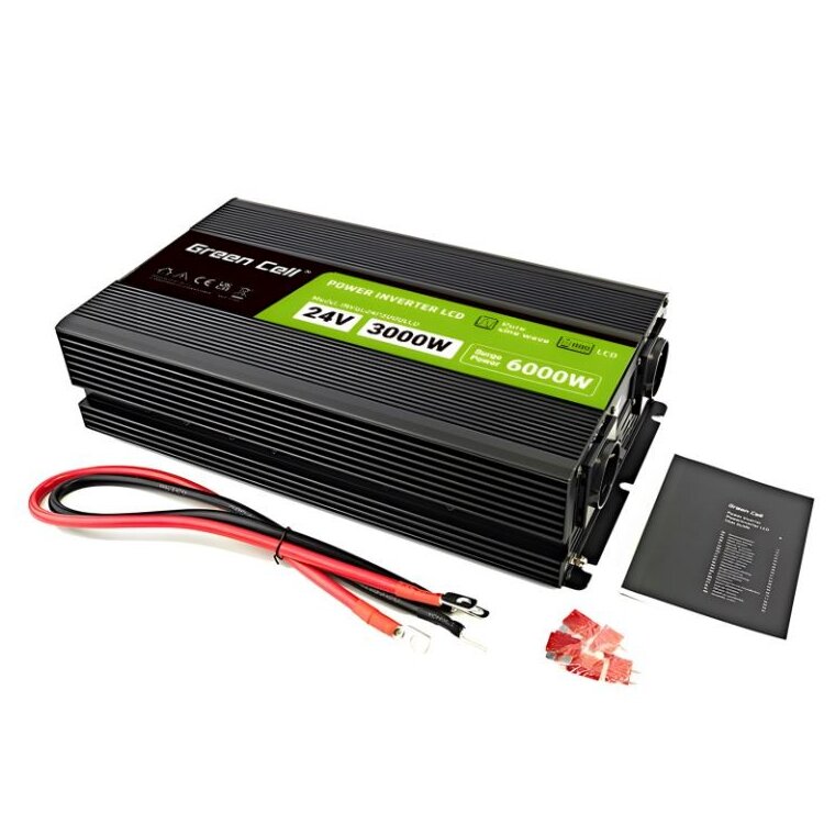 - Green Cell PowerInverter LCD 24 V 3000 W/6000 W tiszta szinuszhullámú inverter kijelzővel, intelligens védelmekkel és aktív hűtéssel a hosszú távú, problémamentes működéshez.