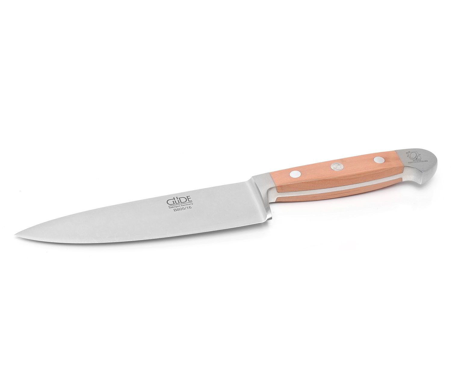 A króm-vanádium-molibdén késacélból készült kézzel kovácsolt penge egy darabból készül, rozsdamentes jégkeményedéssel és kézzel élesítve. Az Alpha Pear sorozatból származó Güde séf késének optimálisan kiegyensúlyozott, finoman polírozott fogantyúja diszkréten strukturált, bársonyos körtefából készül. A fából készült fogantyúkkal ellátott Güde kések semmilyen körülmények között nem tehetők a mosogatógépbe