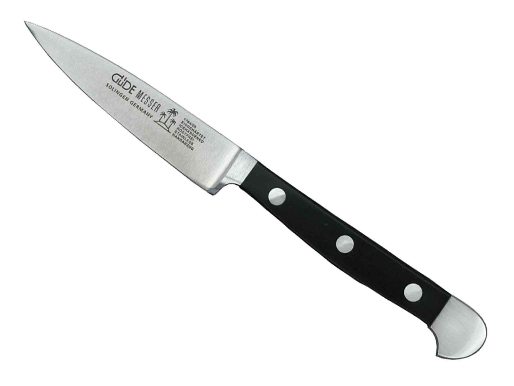 Az Alpha sorozatban a Güde éles pengéit első osztályú műanyagból készült fogantyúval kombinálva. Ez a kés mosogatógépbe tehető, és a finoman polírozott felületnek köszönhetően mindig kifogástalan megjelenése marad a napi használat közben is.