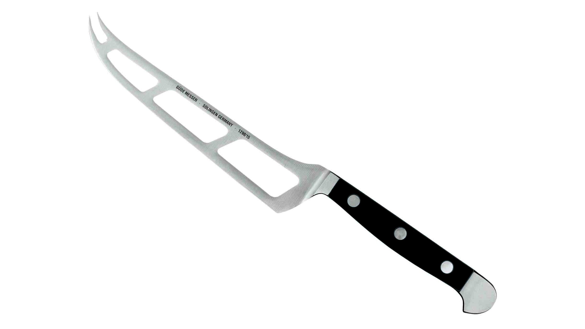 Ez a kés pótolhatatlan, legalábbis a sajt szerelmeseinek: a sajtkés. Pontosan és ragadás nélkül vágja le Gouda-t, Cheddar-t és Co.-t.