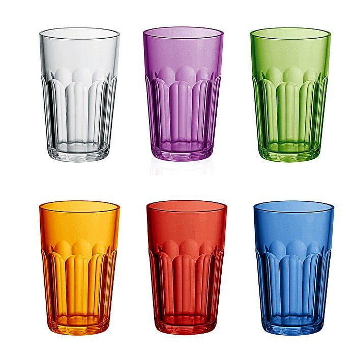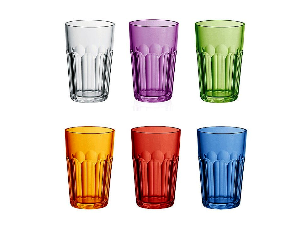 - Színes pohár készlet: A hat különböző színnel rendelkező poharak modern és élénk hangulatot teremtenek.