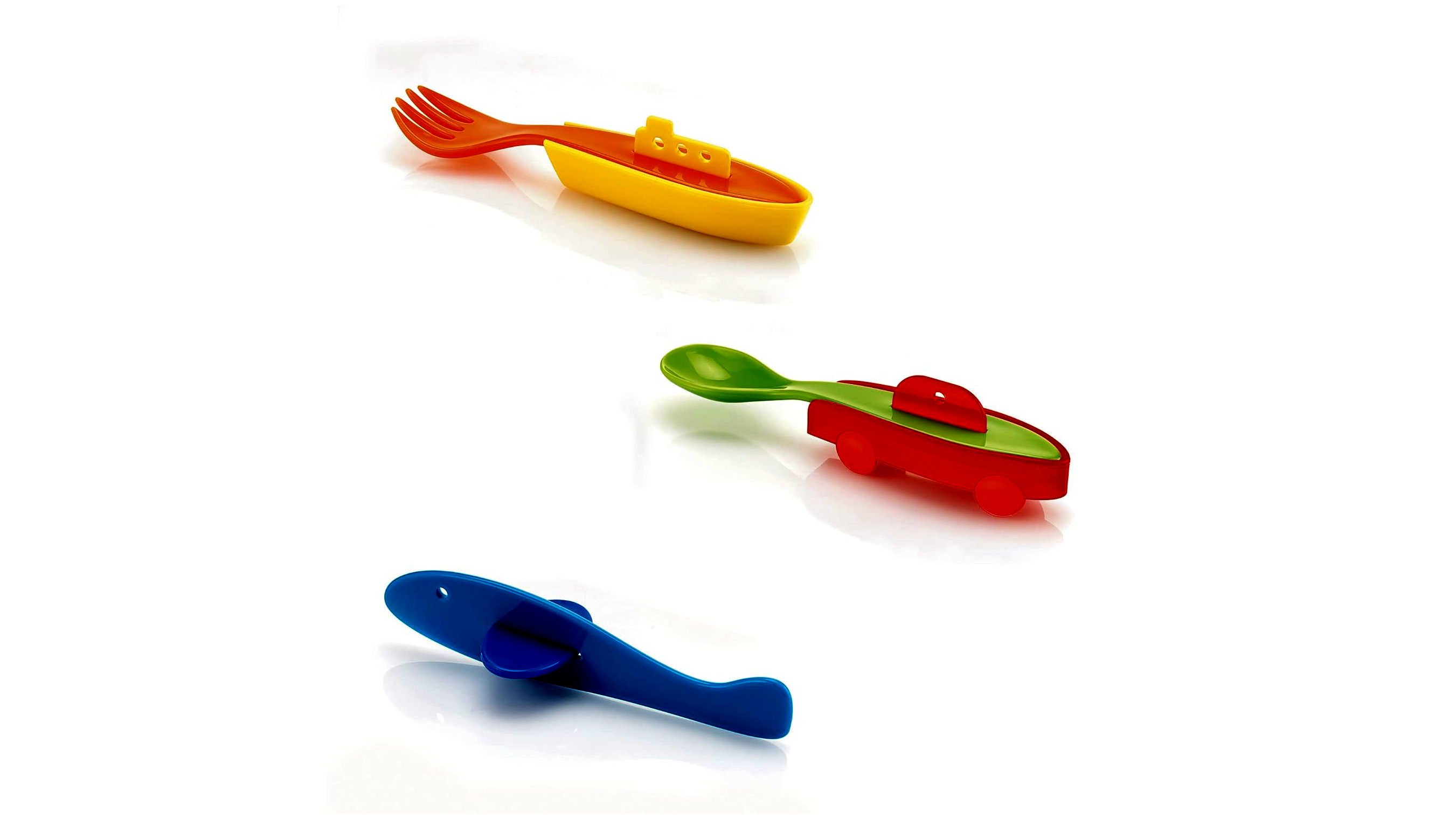 A gyerekek számára tervezett háromrészes evőeszközkészlet, amely kanalat, villát és kést tartalmaz. Ezek az evőeszközök egy aranyos játékká alakítják az étkezést, stimulálva a kicsik fantáziáját. Minden egyes evőeszköz egy izgalmas közlekedési eszközt rejt: a kés egy repülőgép, a villa egy hajó, a kanál pedig egy játékautó. Élénk színeik és mókás formáik biztosan mosolyt csalnak minden gyermek arcára.