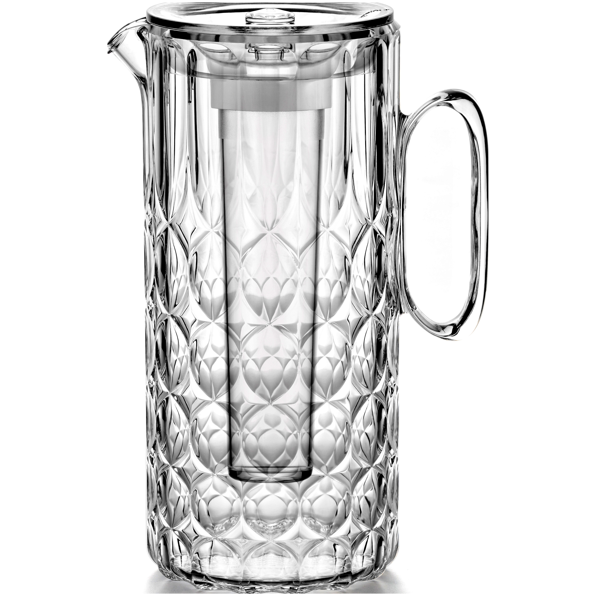 A Guzzini VANITY kancsóval nem csak stílusos, hanem környezetbarát is lehet a mindennapi italok tálalása. A biobázisú akrilkristály és az innovatív aroma betét lehetőséget biztosítanak arra, hogy az ételeket és italokat friss hozzávalókkal tegyék még különlegesebbé, miközben a tető rácsa hatékonyan tartja vissza a jégkockákat, így még kellemesebbé téve az asztali élményt.