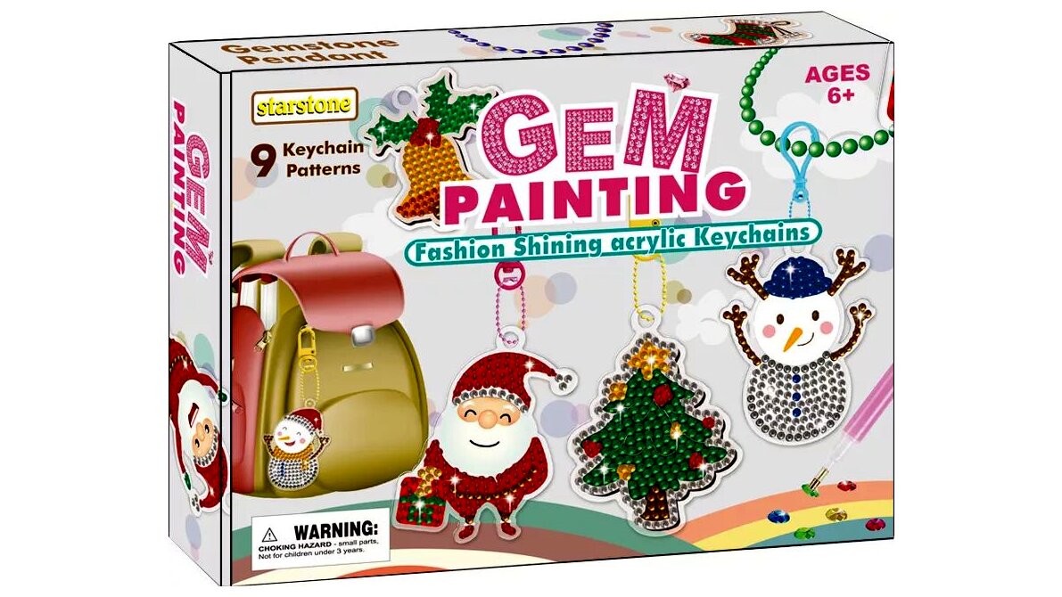 - 9 különböző kulcstartó minta – változatos mintákkal, beleértve a Mikulás, hóember és egyéb ünnepi motívumokat