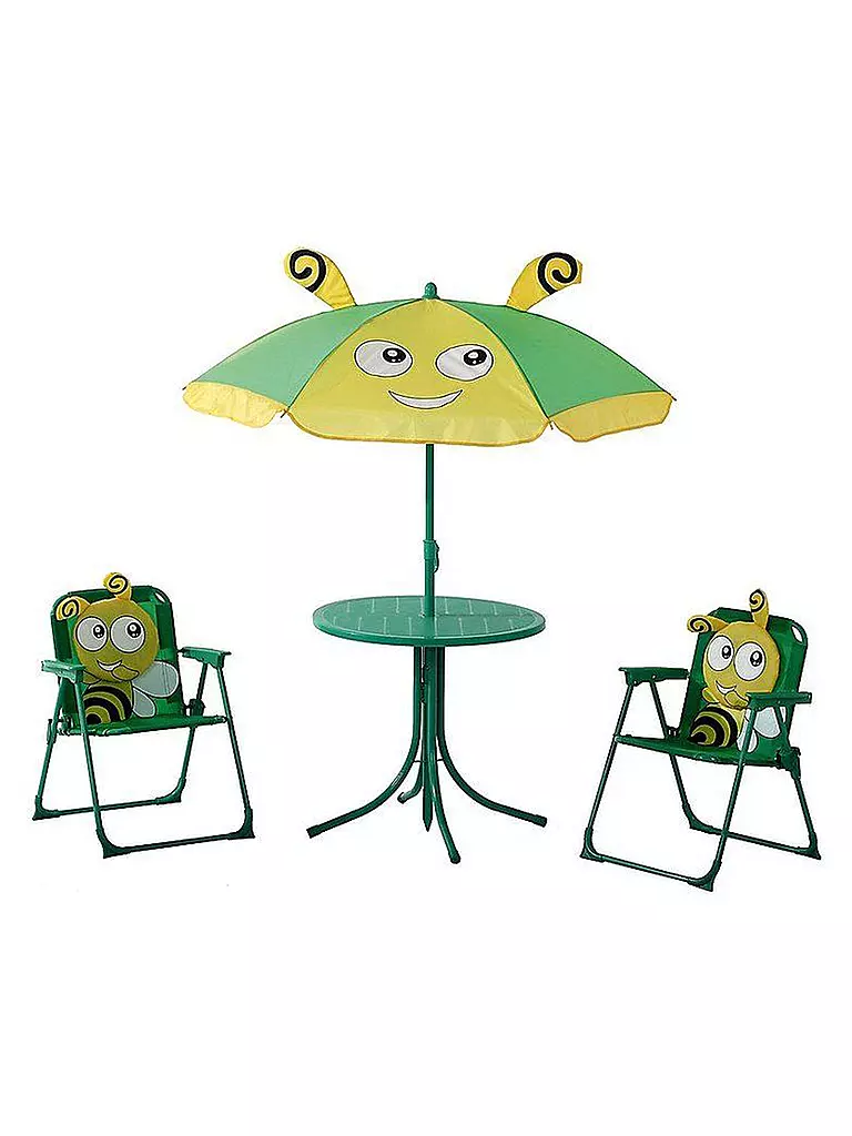 Ez az aranyos méhecske mintás kerti bútor garnitúra a gyerekek számára tökéletes választás szabadtéri játékhoz, kézműveskedéshez vagy uzsonnázáshoz. Vidám színeivel és mintáival színesíti a kertet vagy a teraszt, és nagyszerű szórakozást nyújt a legkisebbeknek is.