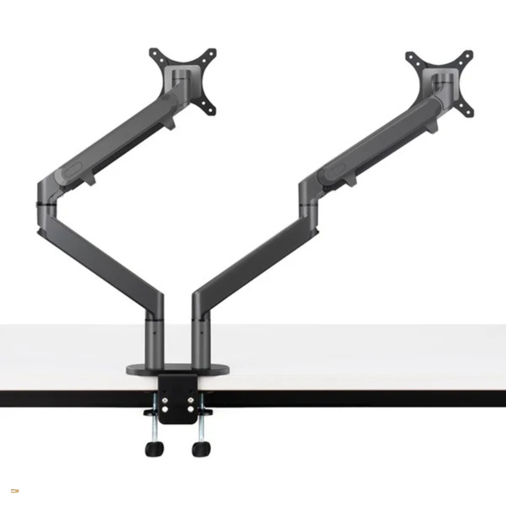 Ez a prémium asztali monitorkar ideális választás mindazoknak, akik két kijelzővel dolgoznak, és fontos számukra az ergonomikus, rendezett és hatékony munkakörnyezet. A robusztus felépítés, a finoman működő gázrugós mechanika és a széles állítási tartomány lehetővé teszi, hogy a monitorokat mindig az Ön testmagasságához, munkastílusához és feladatához igazítsa.